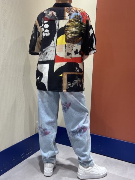 メンズシャツとカラフルなデザインプリントのデニムコーデ✨
