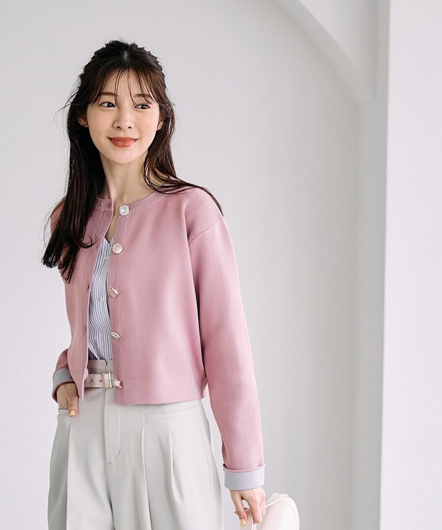 今回は、大粒ビジューが女心を擽るジャケット風カーディガンを