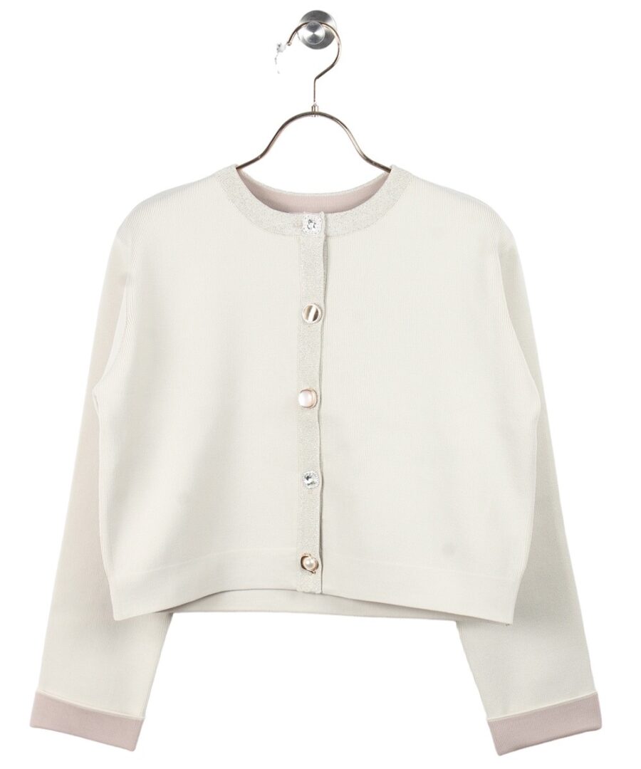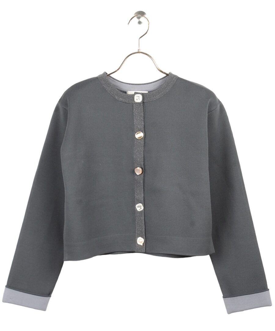 【ビジュー釦袖口配色ジャケット風ニットカーディガン】