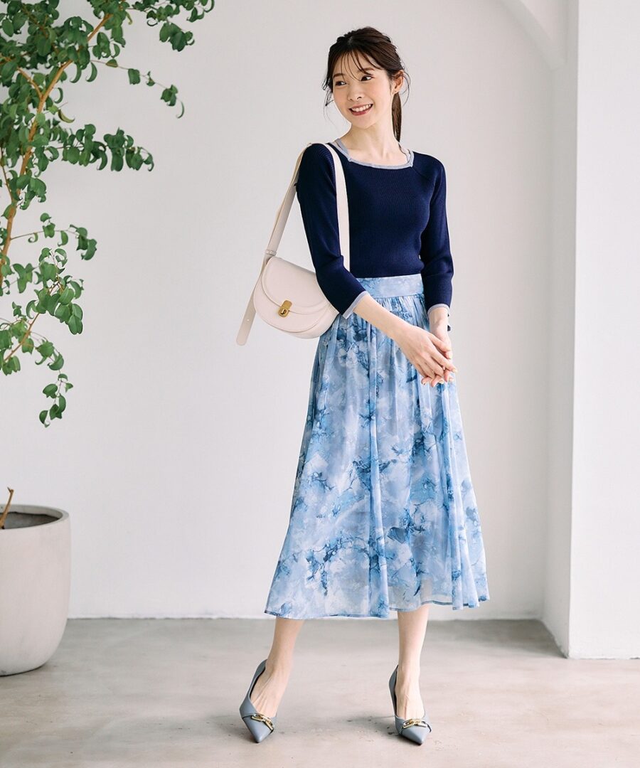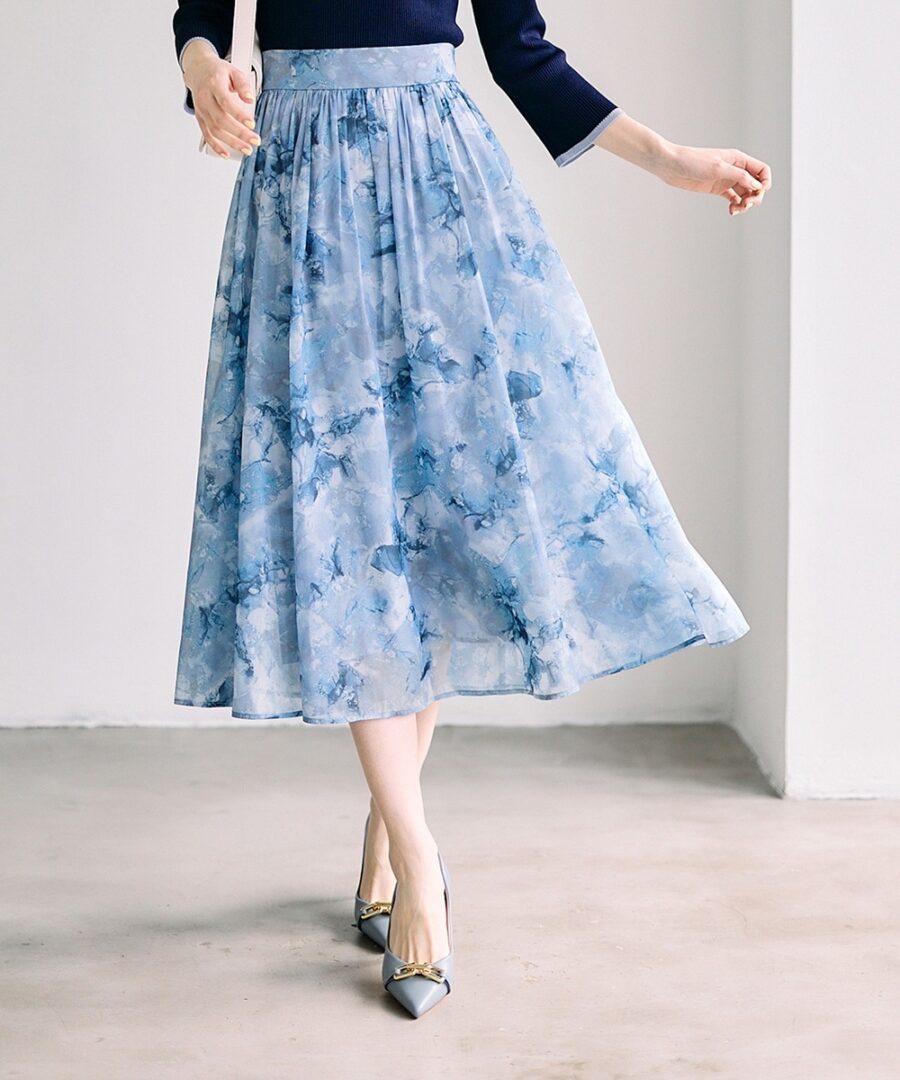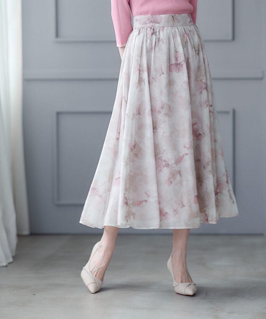 甘すぎない抽象柄で、花柄が不得意な方でも挑戦しやすいフレアスカート♡