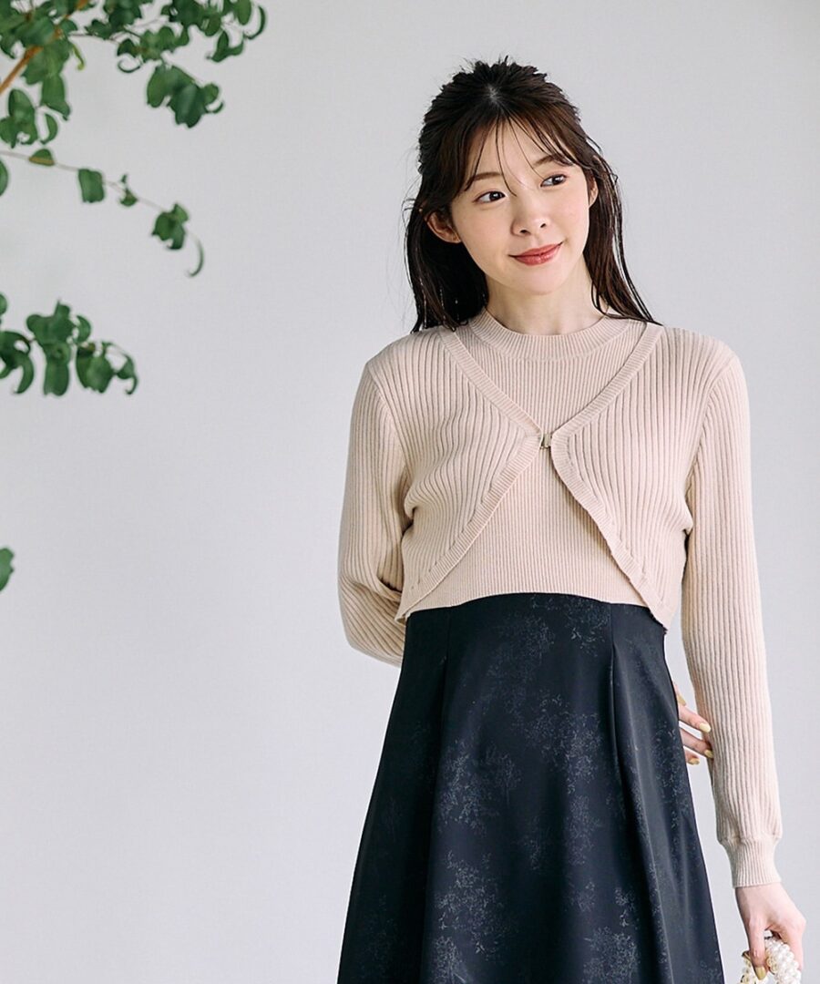 春・秋はセットのカーディガンやジャケットと合わせて
