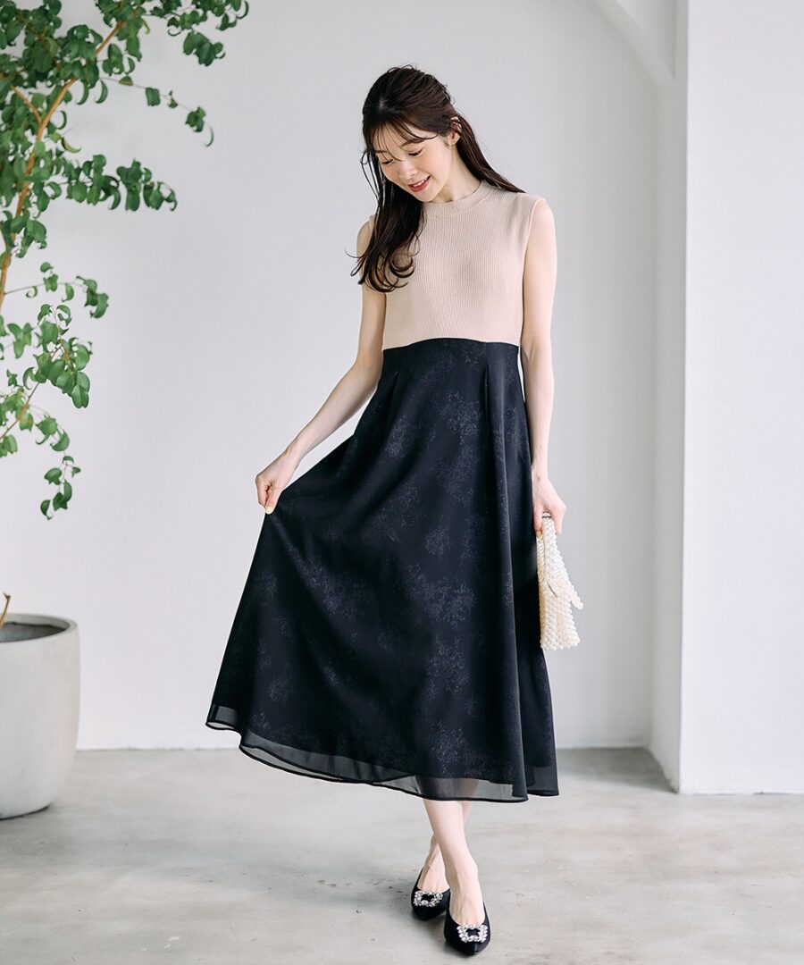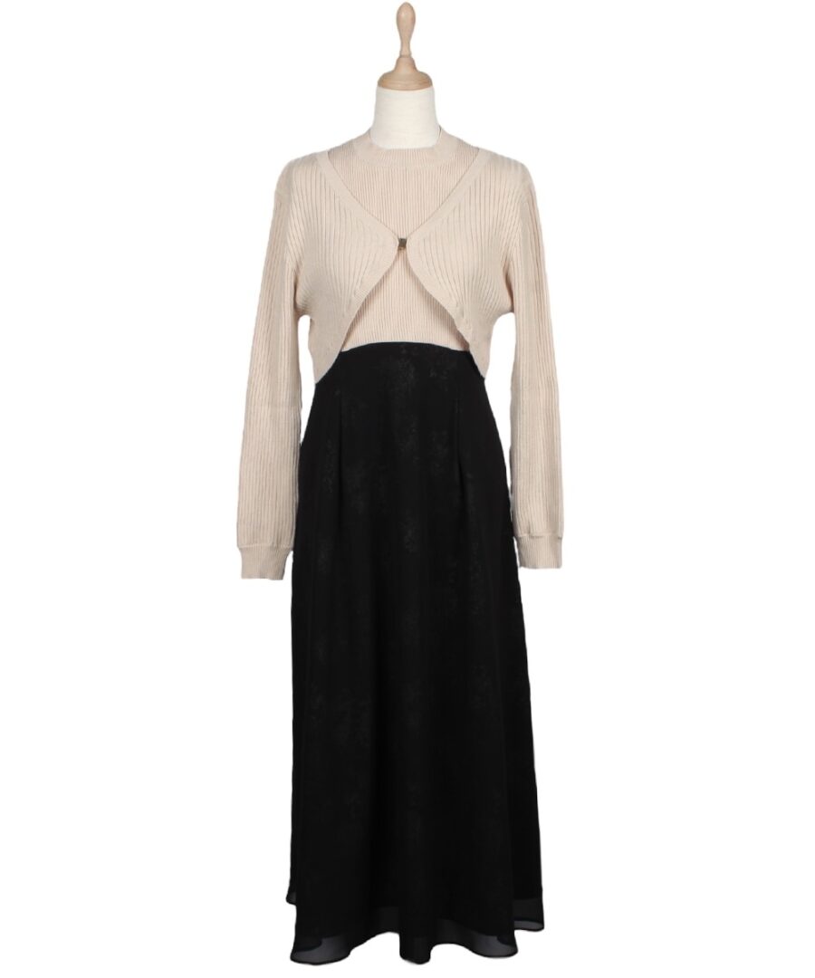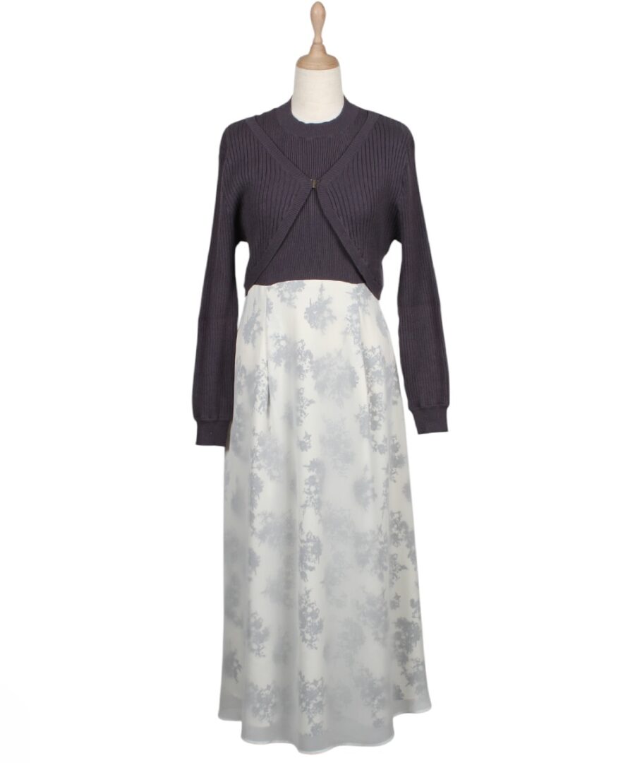 【花柄ドッキングニットワンピース×カーディガンセット】