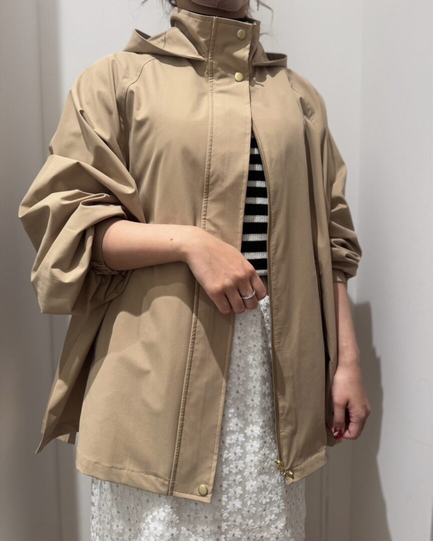 旬なスタンドカラーが魅力のフードブルゾンが店頭に入荷いたしました。
