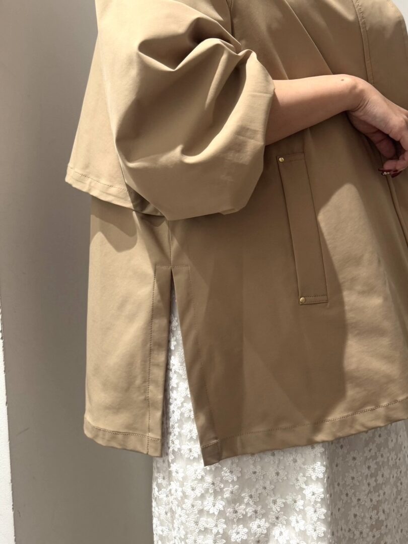 袖口はゴムシャーリングになっており、袖をまくった着こなしでも◎深めのサイドスリットで軽さを出しています。