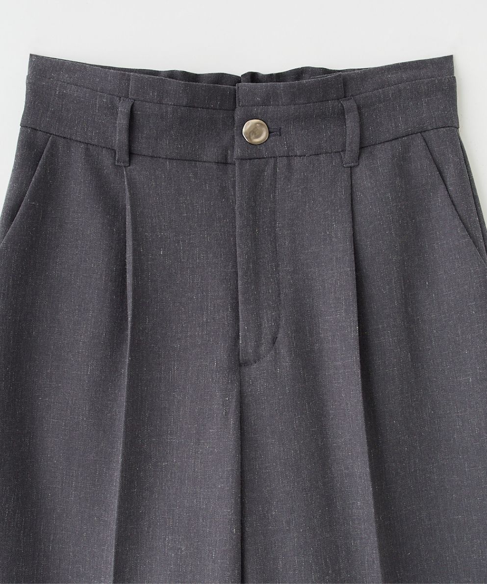 ・ウエストのタックディティールが目線を上に上げてスタイルアップ効果のあるワイドパンツです。