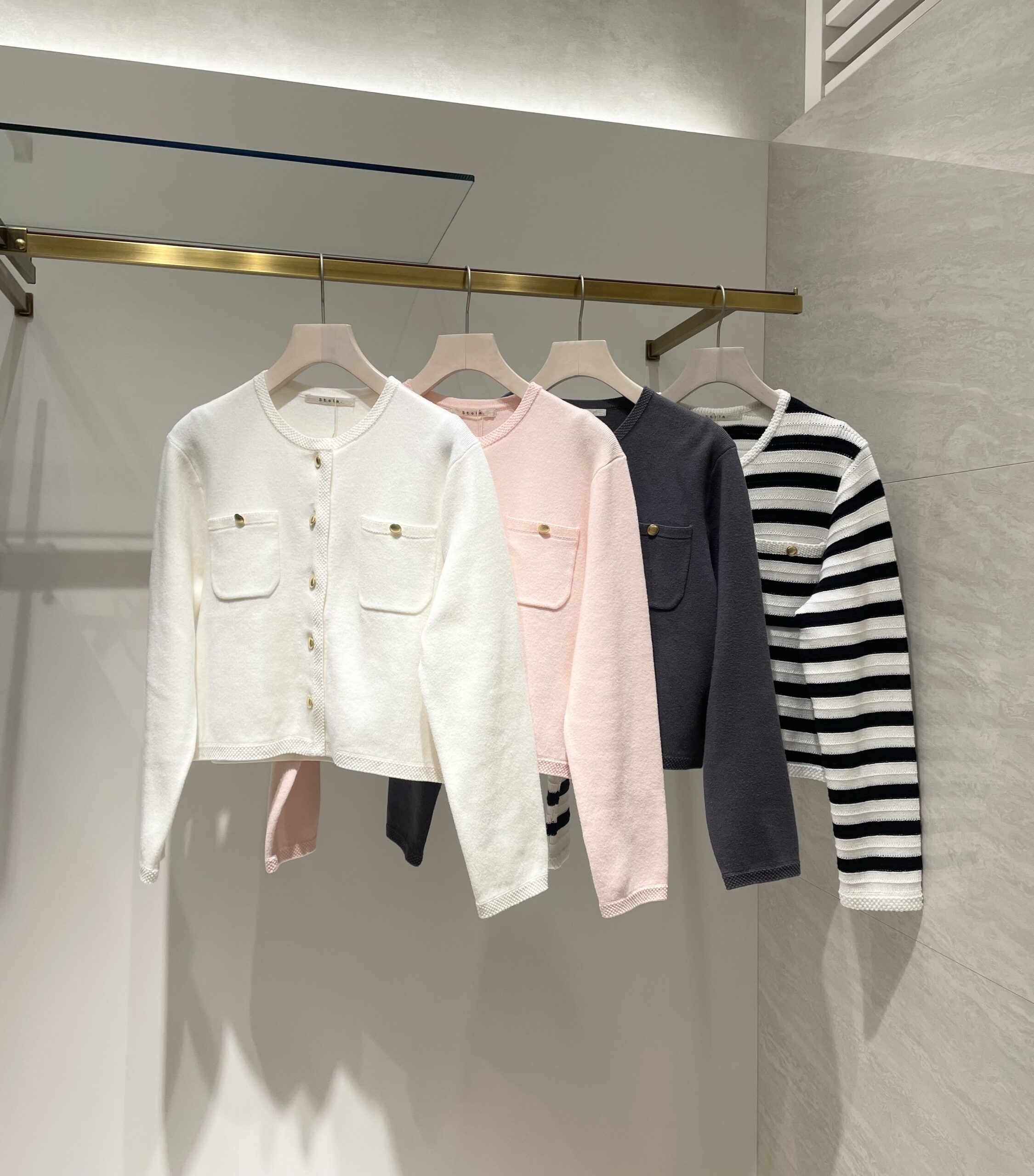・スムース編みの組織で布帛ライクに仕上げたニットカーディガンです。