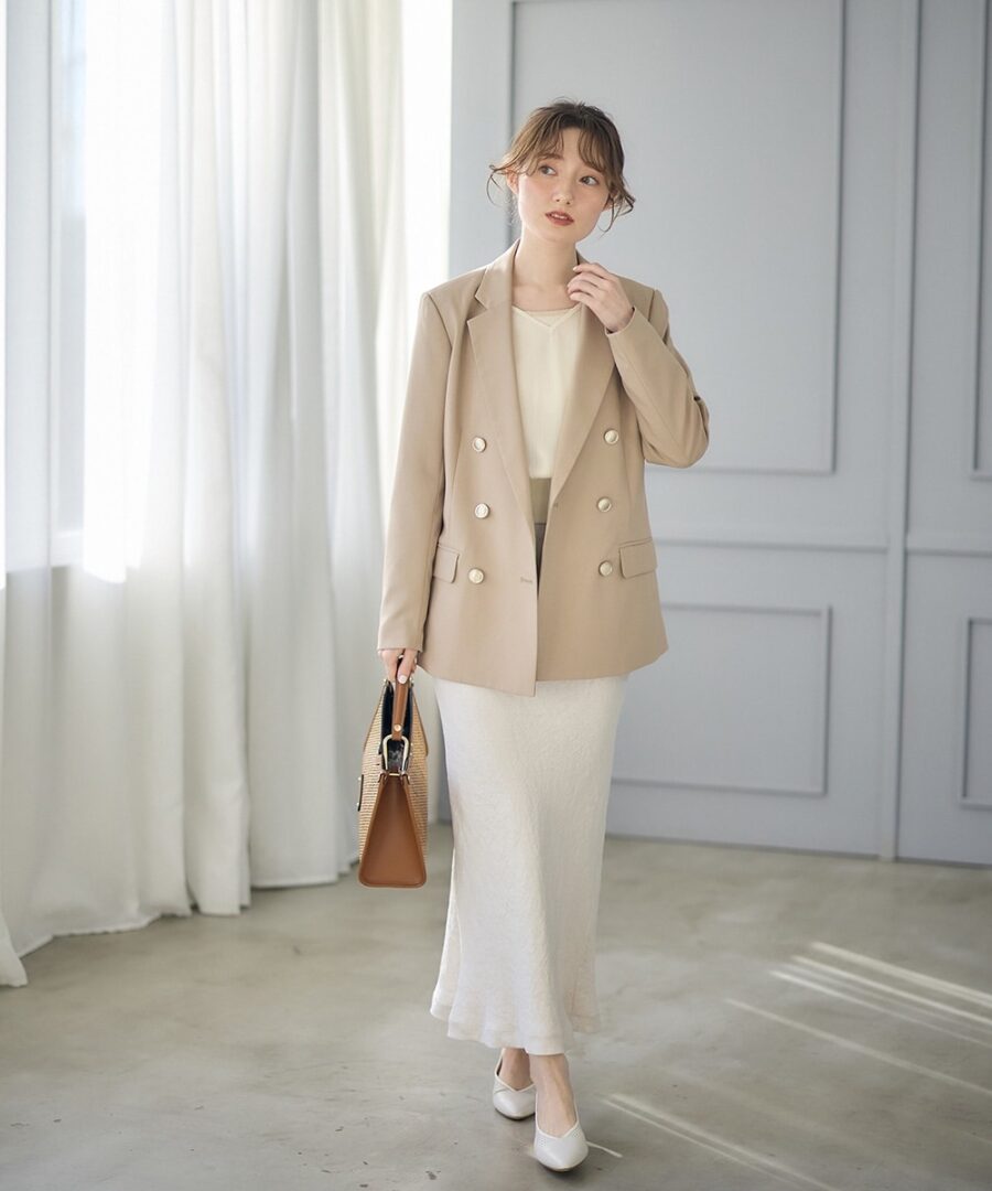 柔らかなベージュは春らしい清潔感と温かみを感じさせます♪