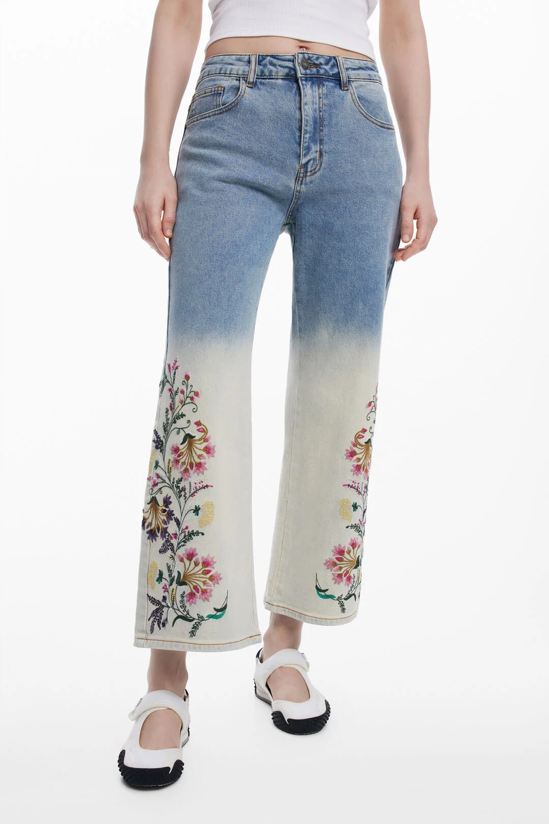 デニムジャケットとパンツに花柄刺繍デザインがカワイイです!!🌸