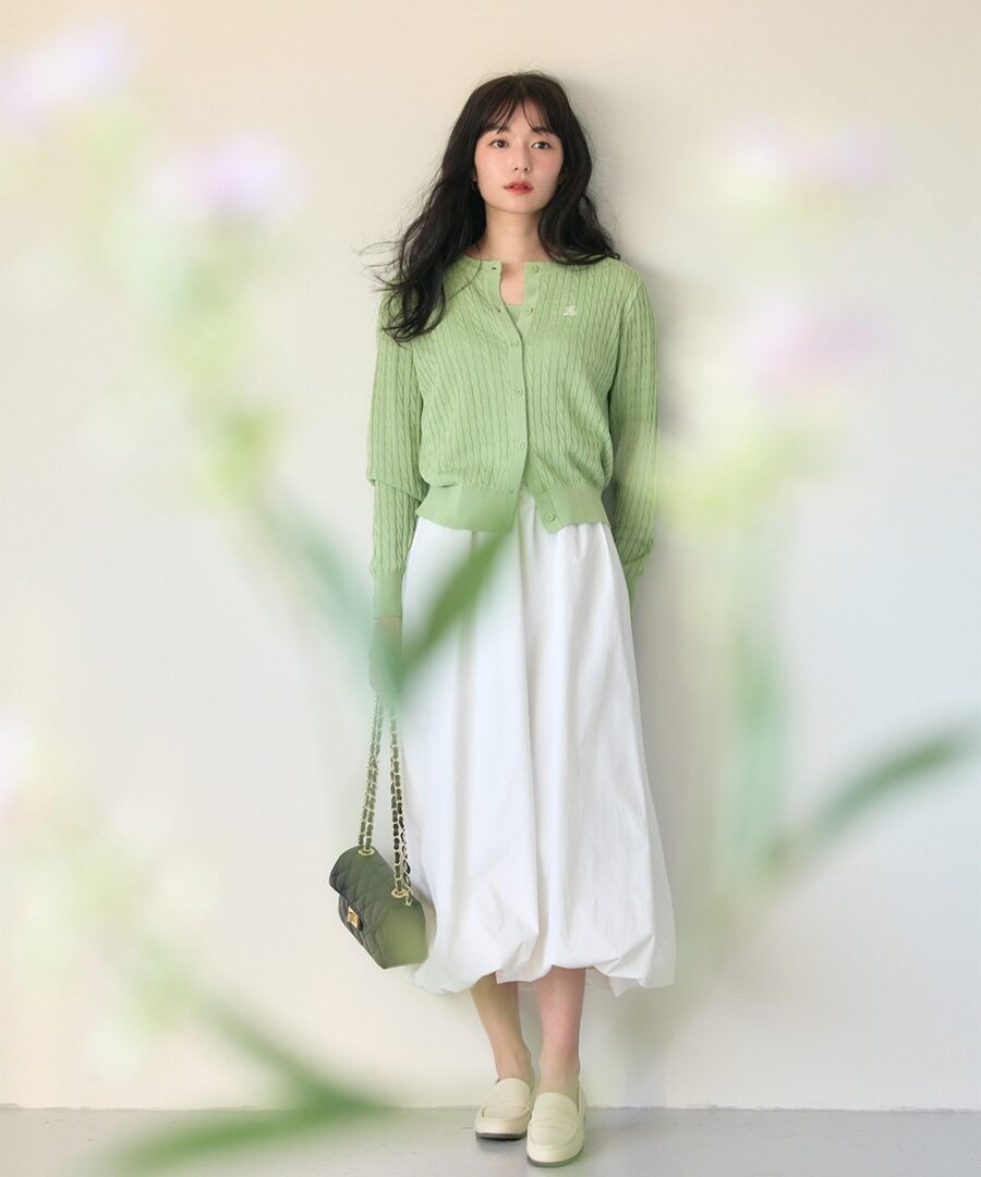 細かいケーブル編みとコンパクトなシルエットが女性らしさを演出♪