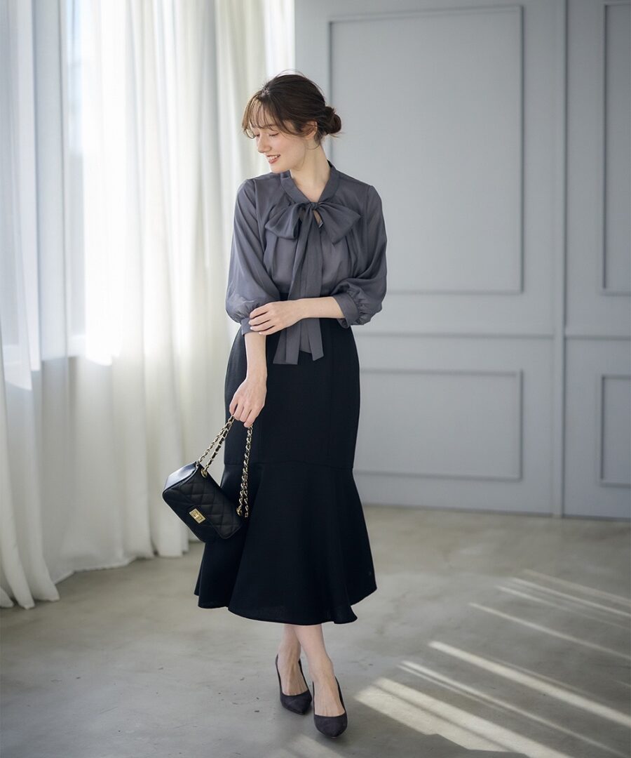 大人気なボウタイブラウス同様、ボウタイの巻き方で