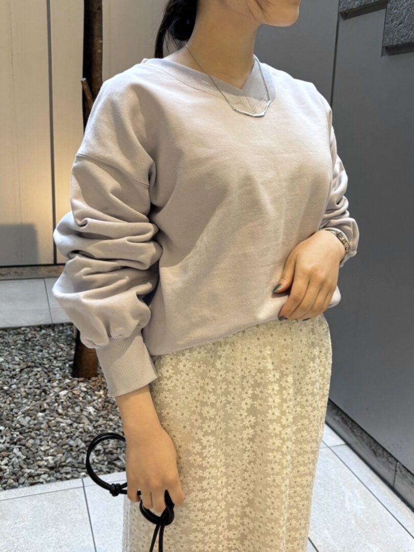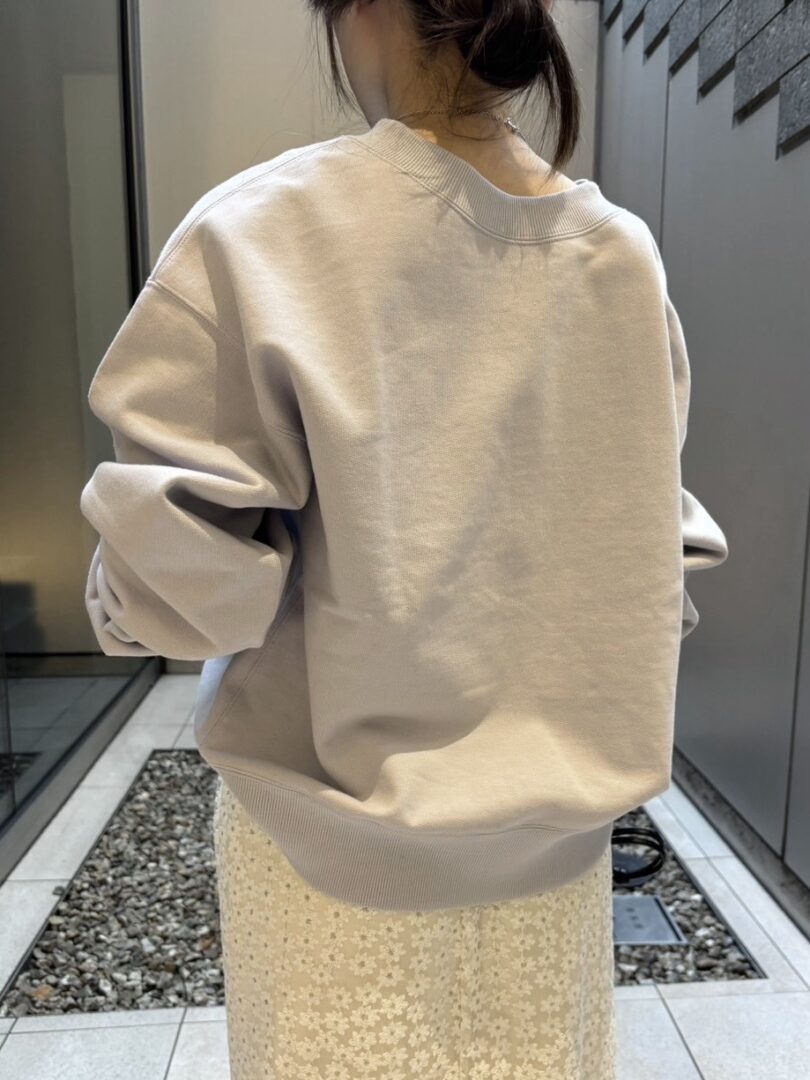ウエストが隠れる着丈と、程よく腰にもかかる着丈なので、安心感もあり、パンツにもスカートにも相性の良いワイドシルエットのスウェットです。