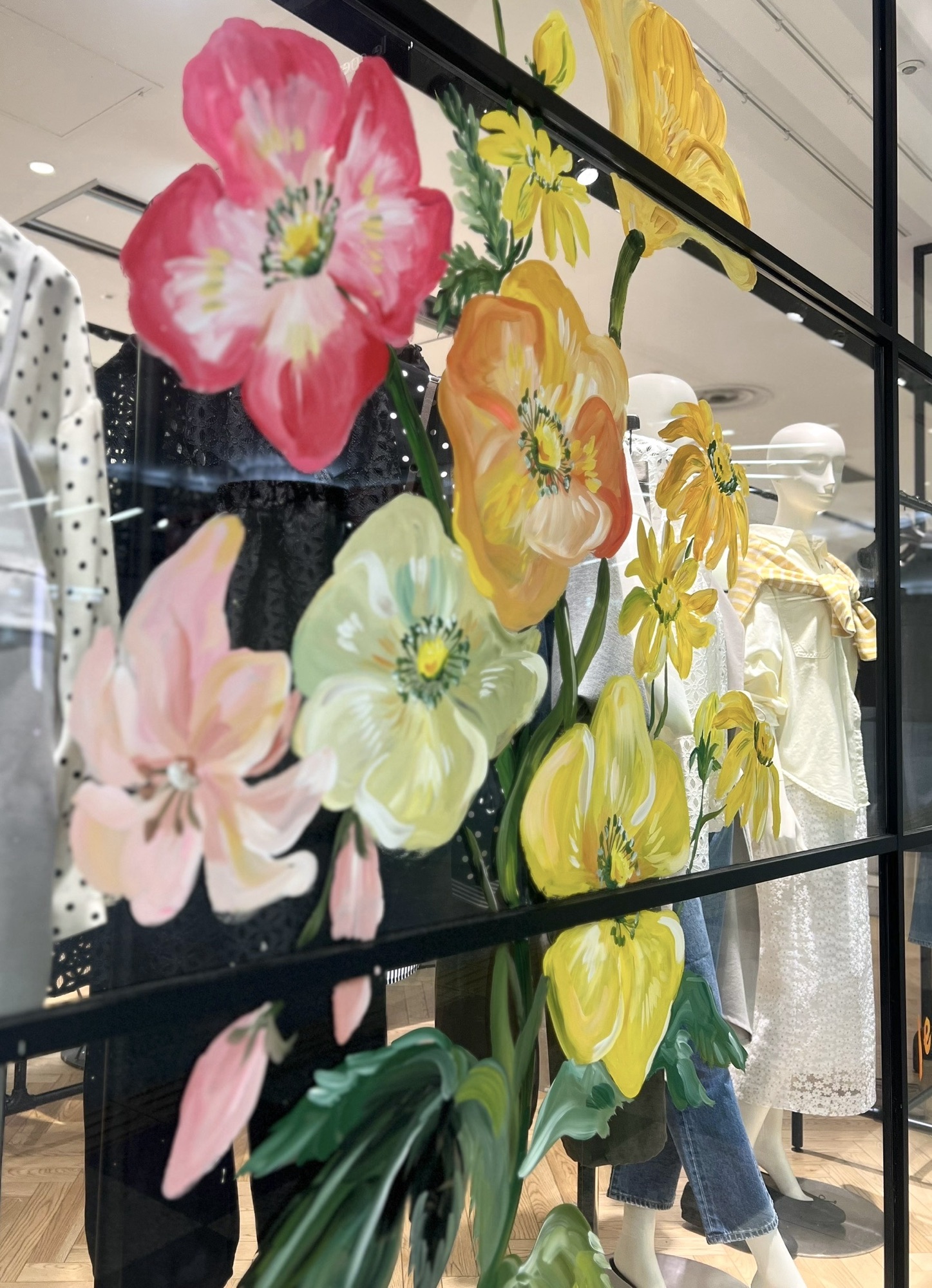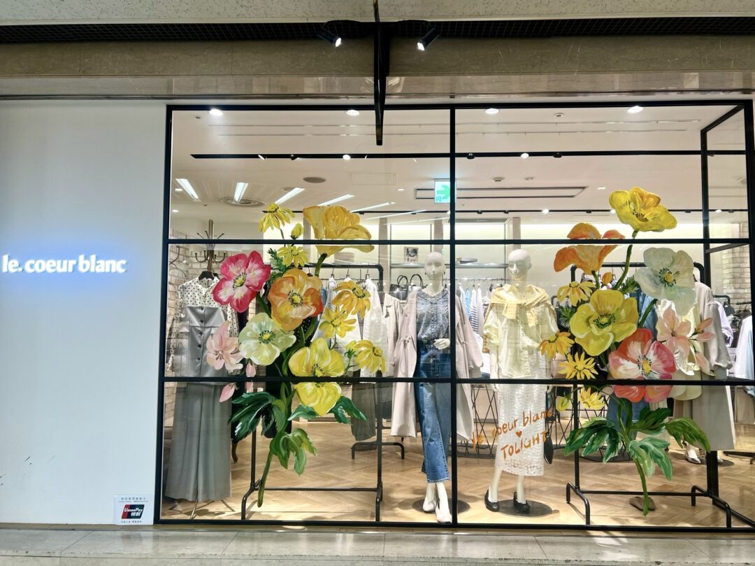 青山明生氏による春夏のウィンドウペイントもお楽しみいただけます。