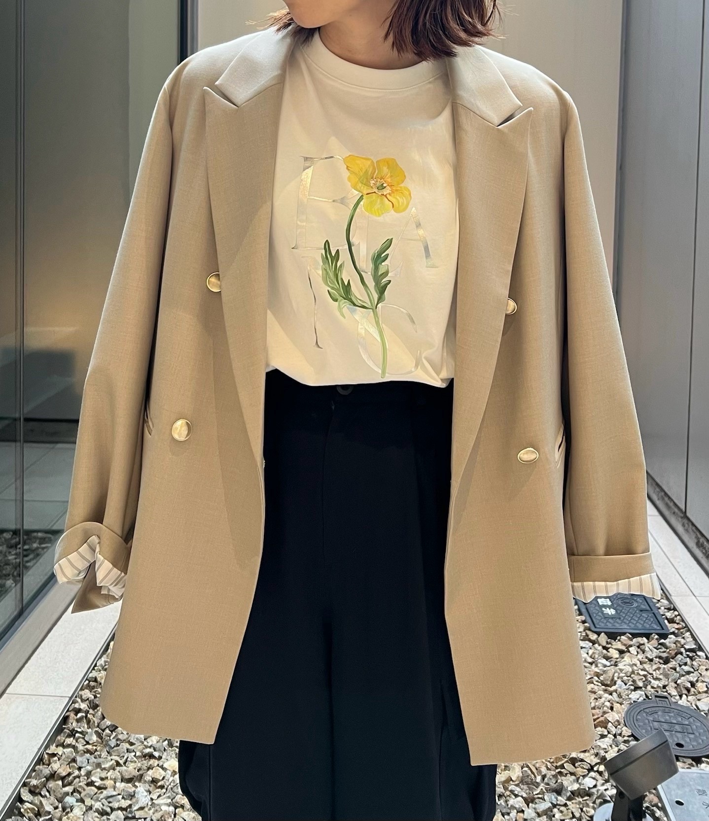 一輪のフラワープリントがワンポイントでアクセントにもなり、女性らしい上品さをプラスしてくれます◎