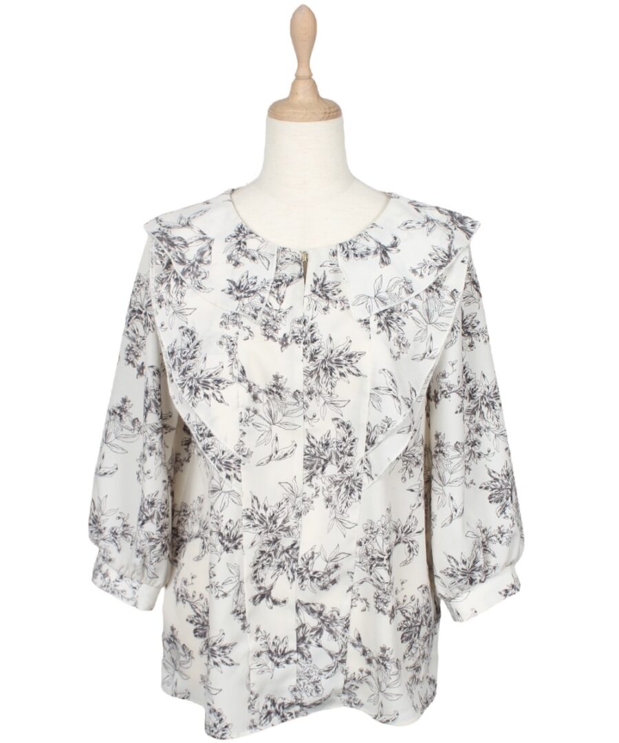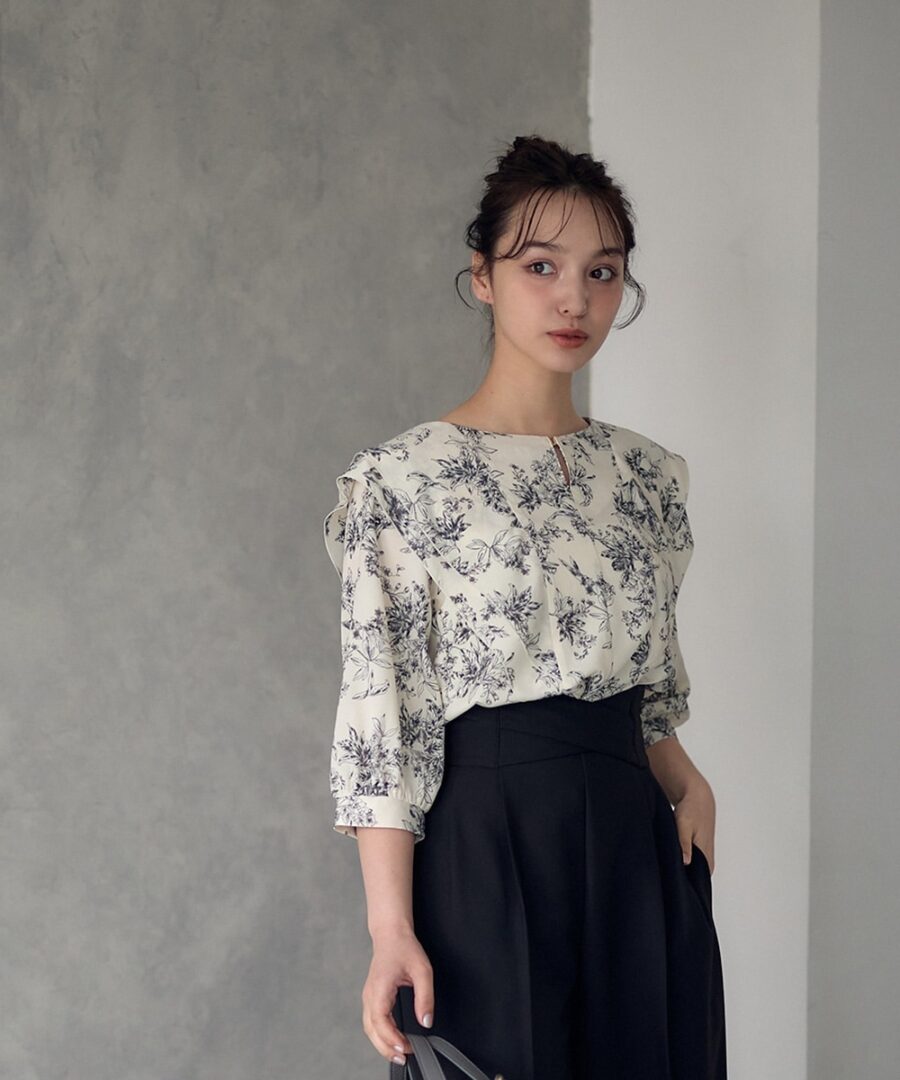 【フリルデザイン花柄ブラウス】
