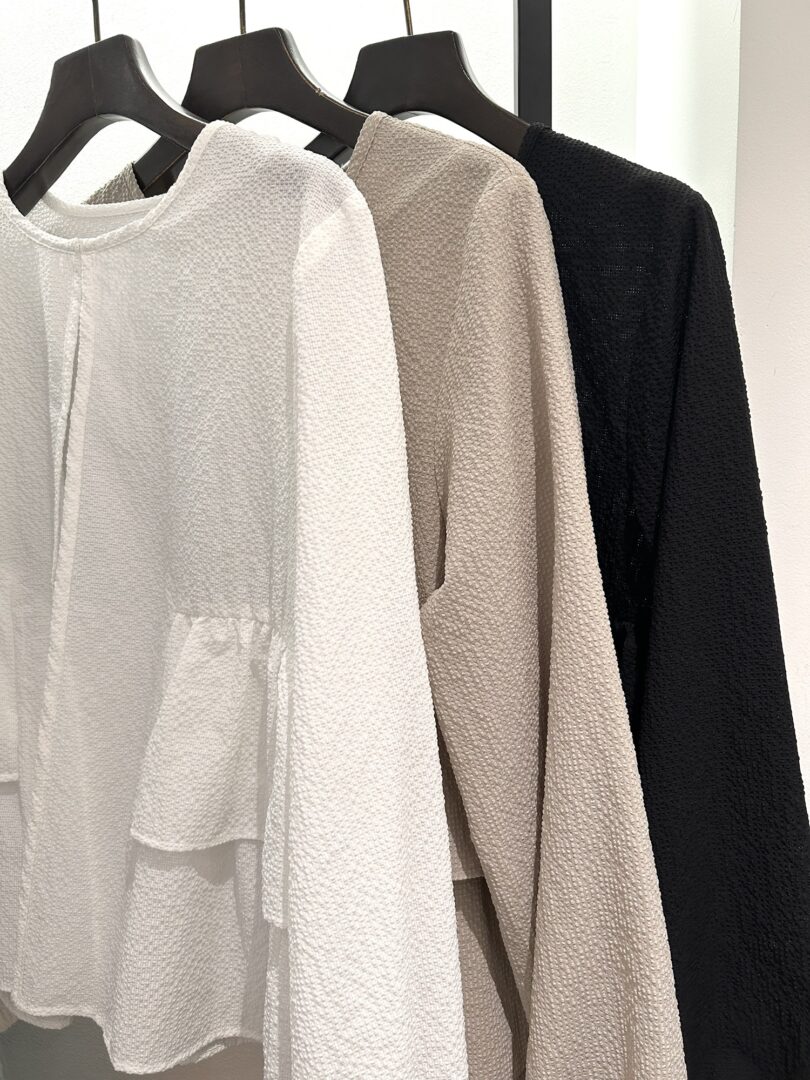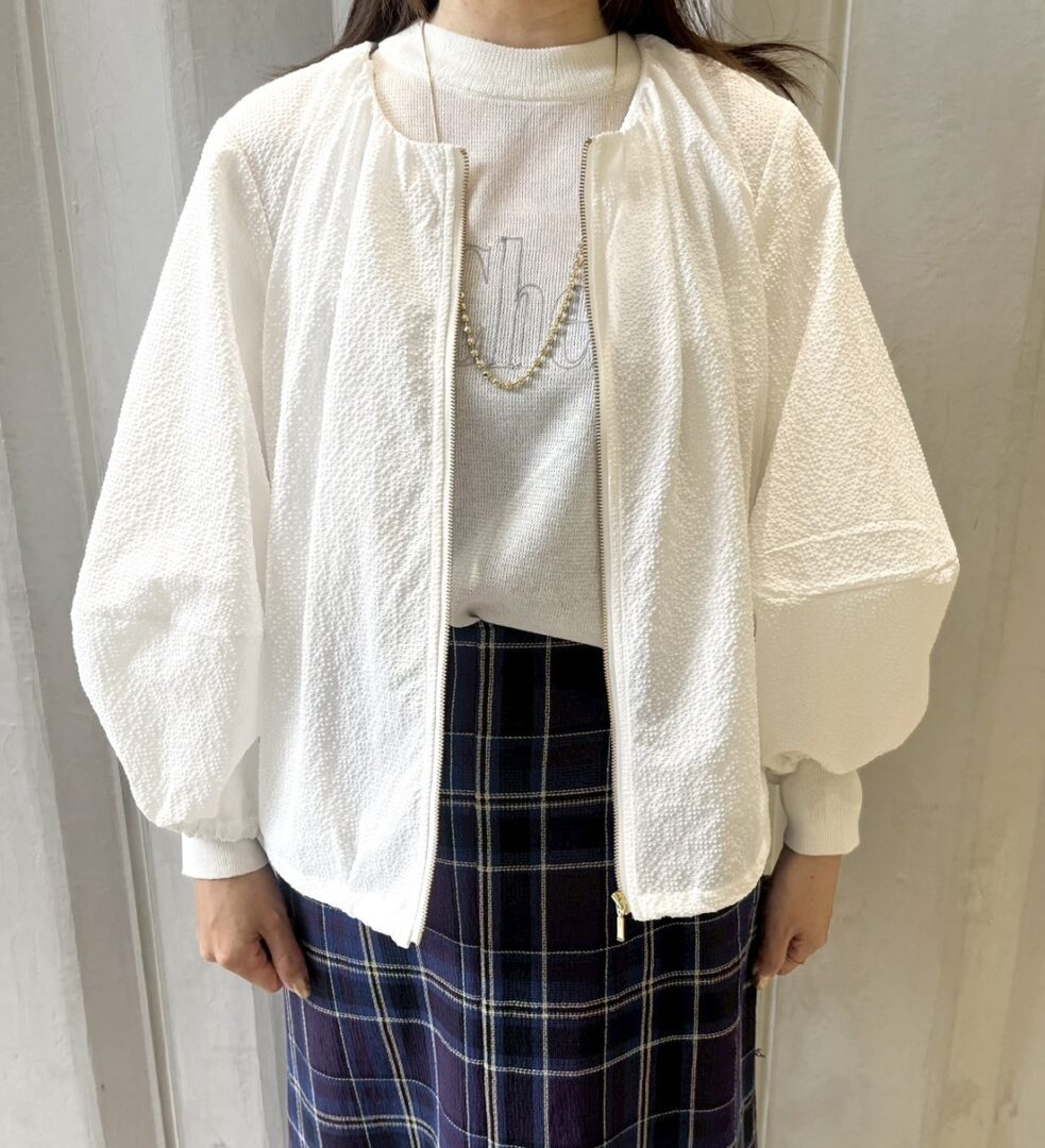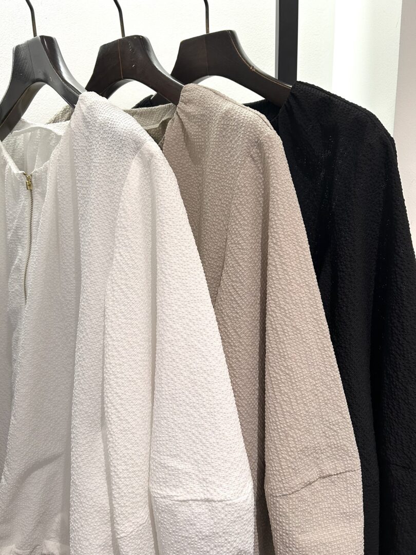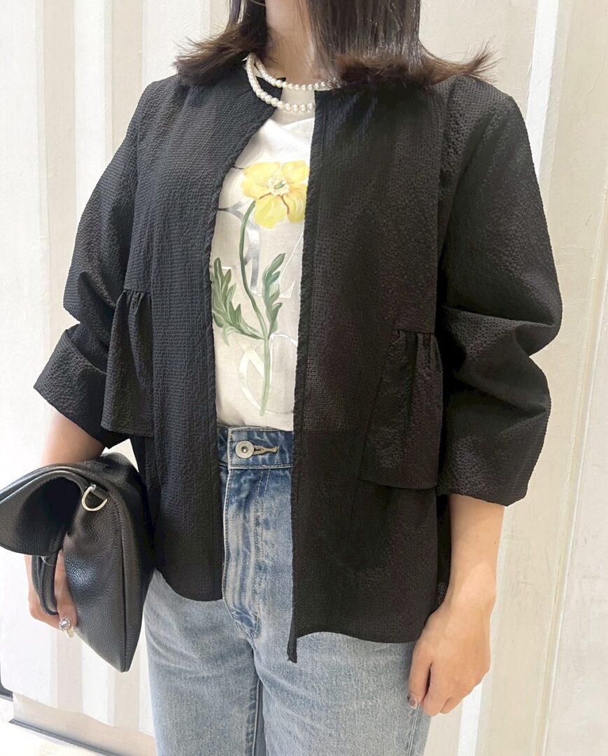 肌離れも良く、少し透け感があり、暑い時期にもさらっと羽織れるライトアウターです。