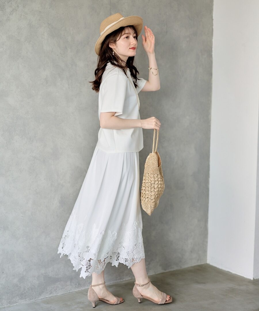 レース部分は裾の一部だけなので程よく肌見せが出来るのがポイント!