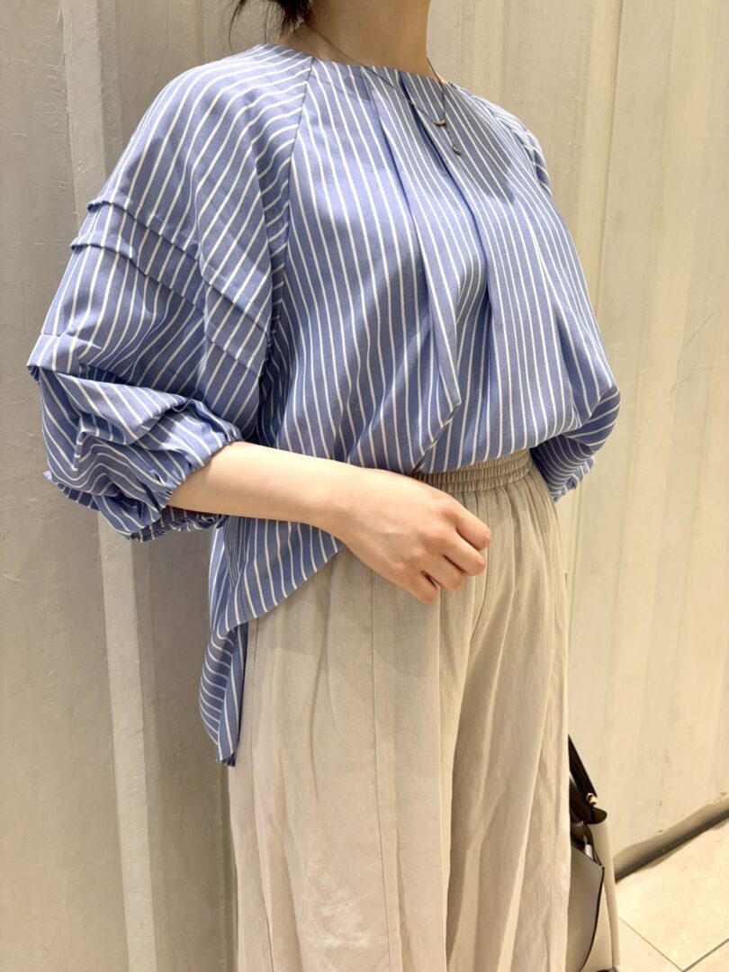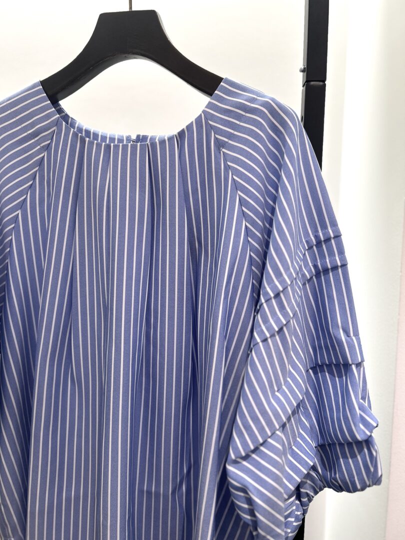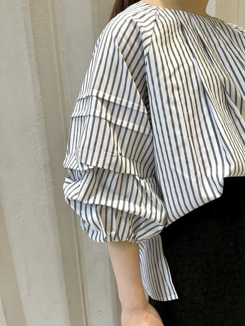 爽やかな配色が目を惹くストライプ柄の素材を使用した夏らしいブラウスが入荷いたしました。
