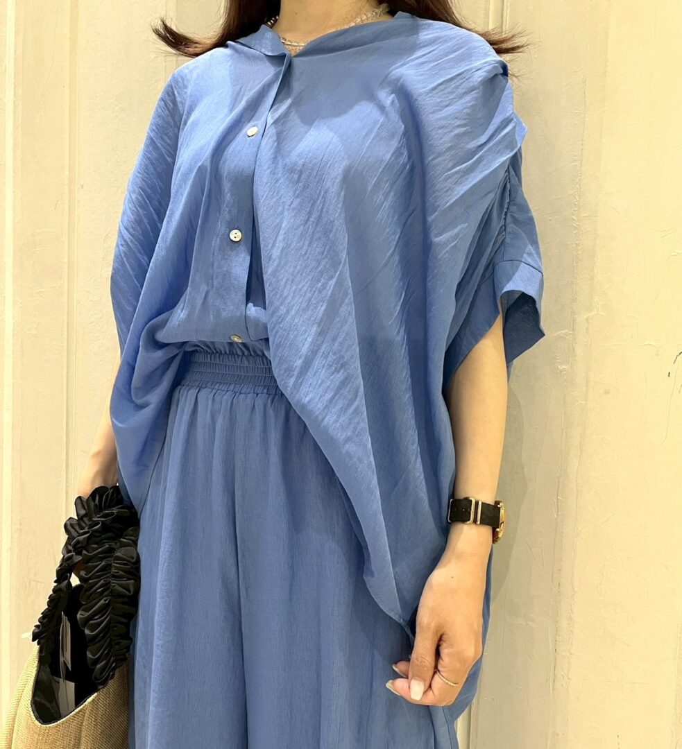 夏に向けて、生地もデザインも涼しく着れるセットアップコーデが入荷いたしました。