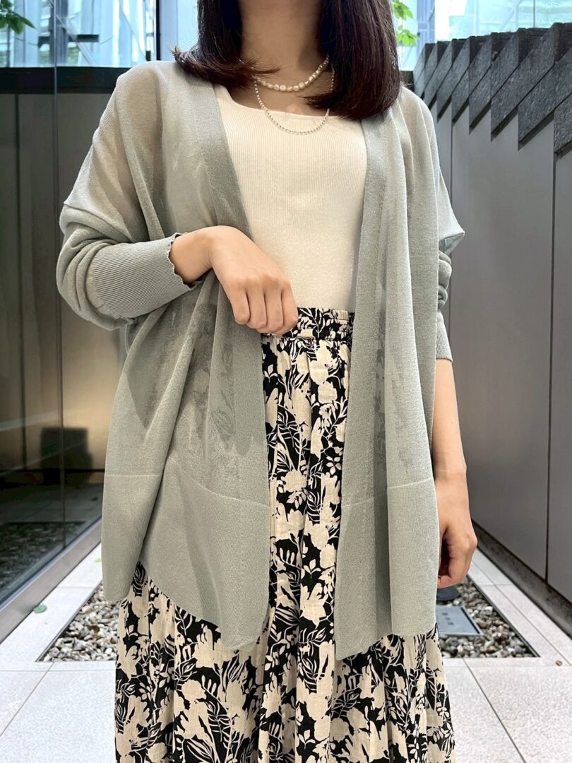 日差しが強くなる暑い季節にぴったりな、薄手カーデ×揺れ感スカートで、上質な抜け感あるコーディネートをご紹介いたします。
