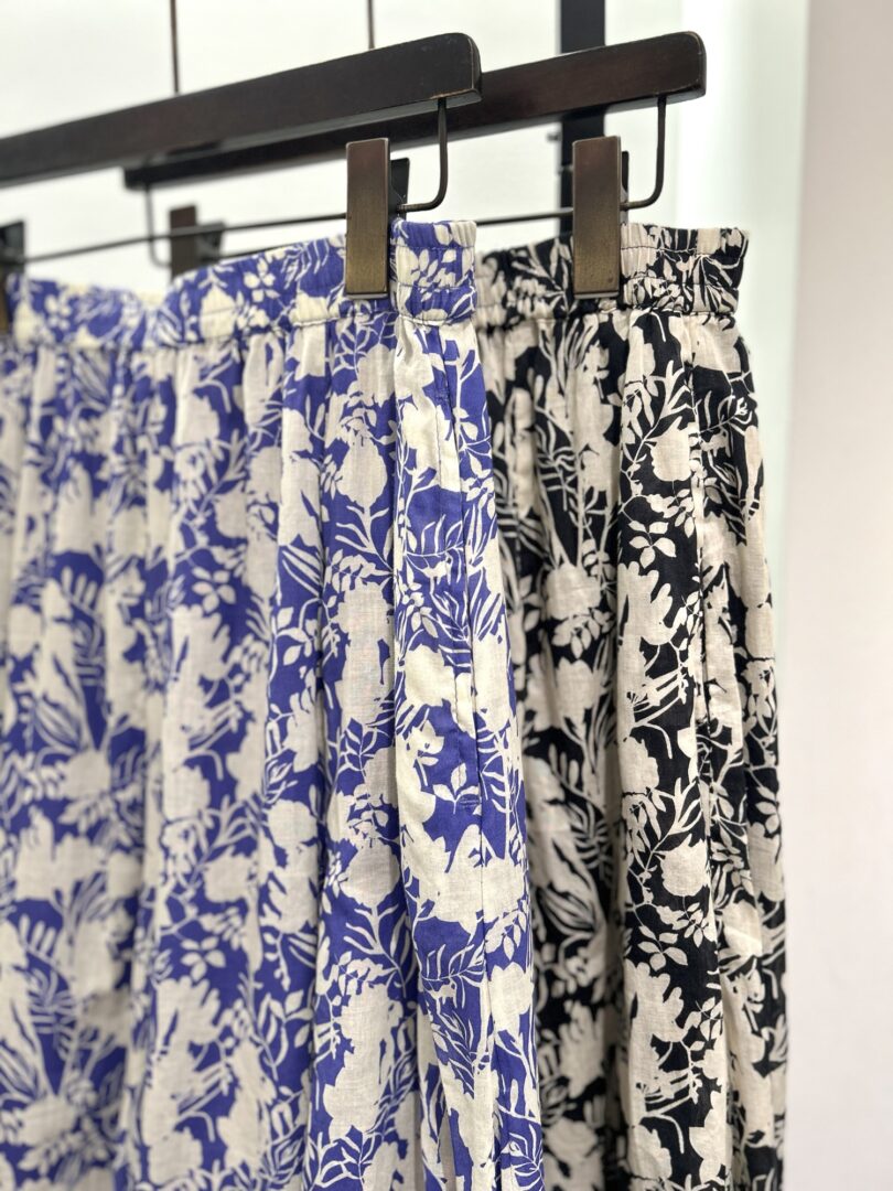 モノトーンの色使いが落ち着いた大人っぽい印象で、さらっとした質感と軽さが魅力の インド綿を使用したスカート。