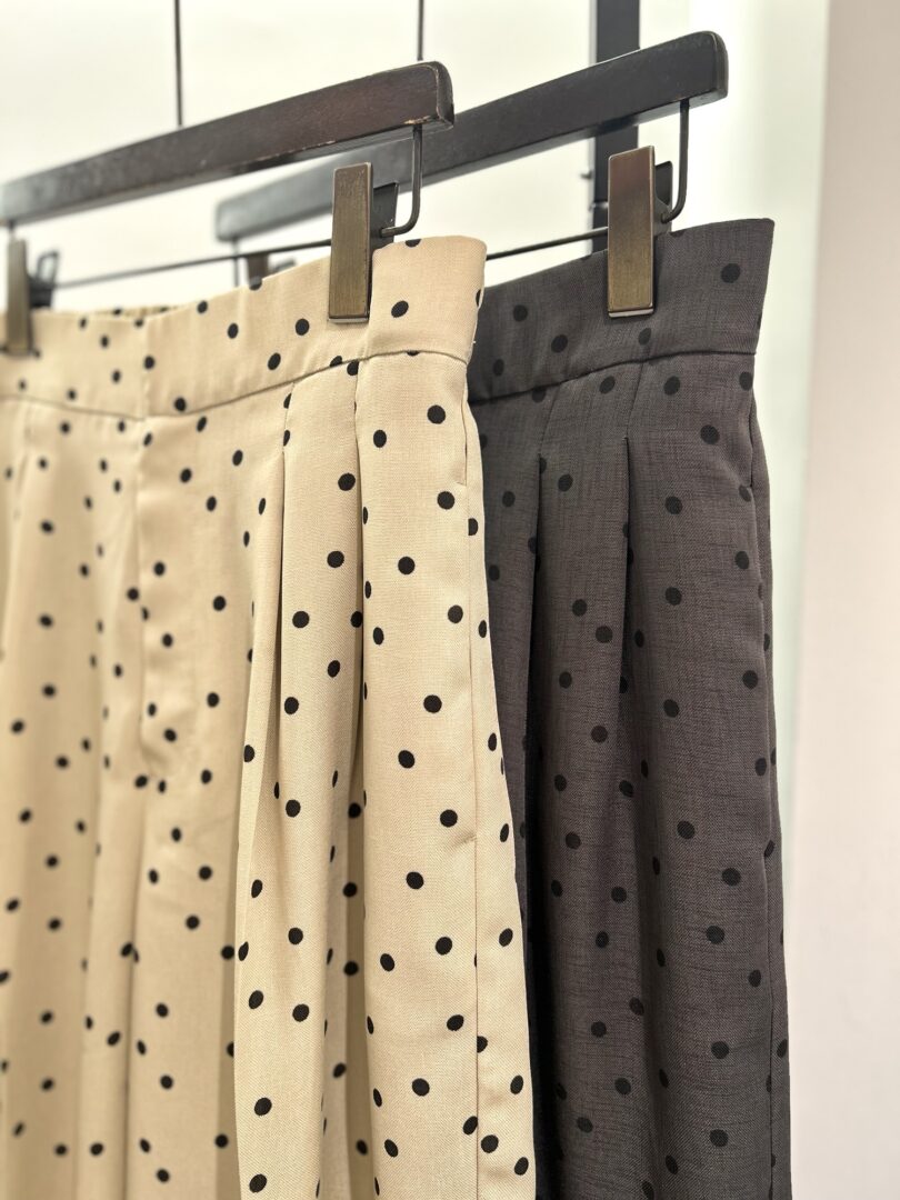 ロゴTやニットなどにも合わせやすく、ドット柄なのでシンプルになりすぎずこれ1枚で決まります。