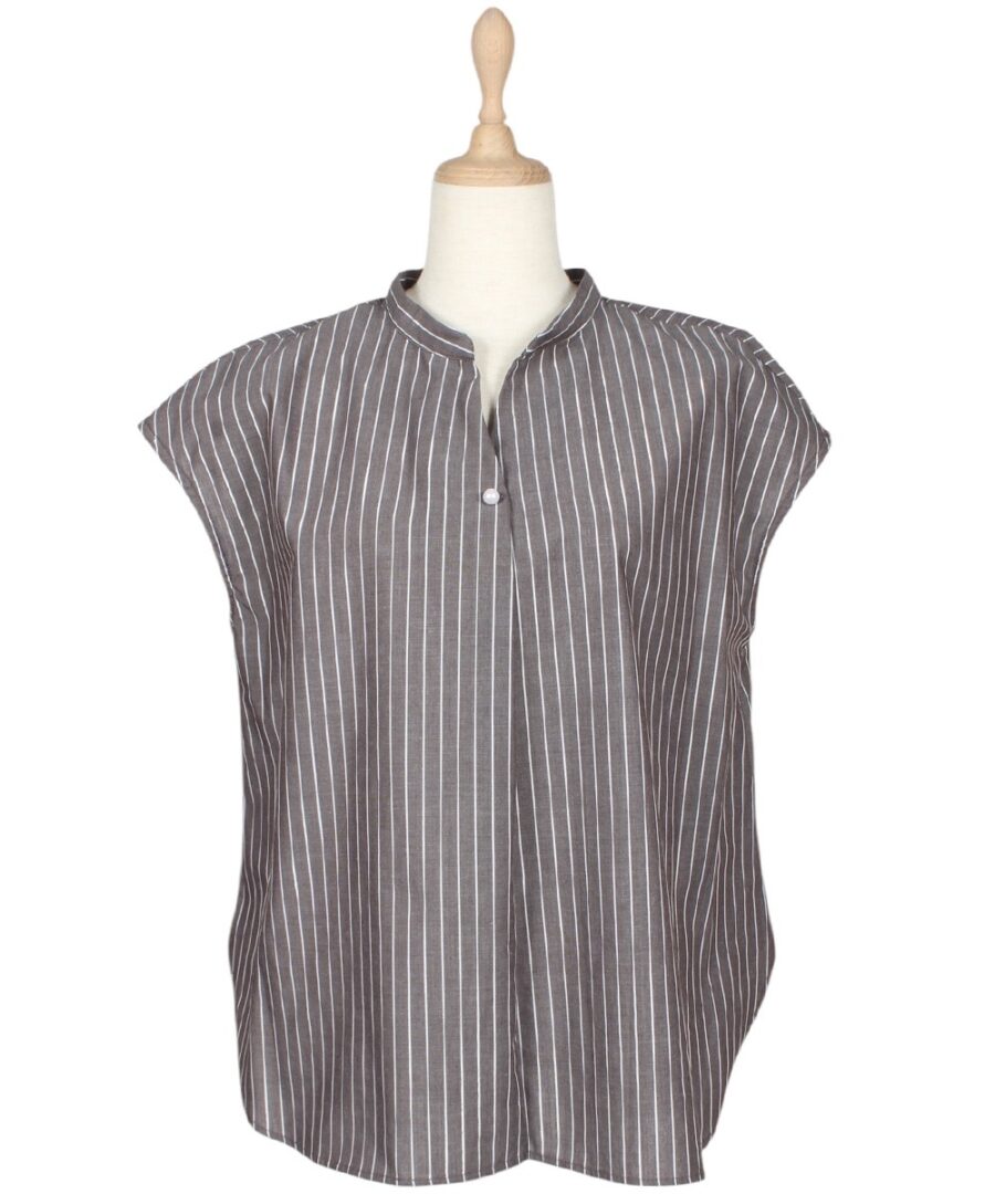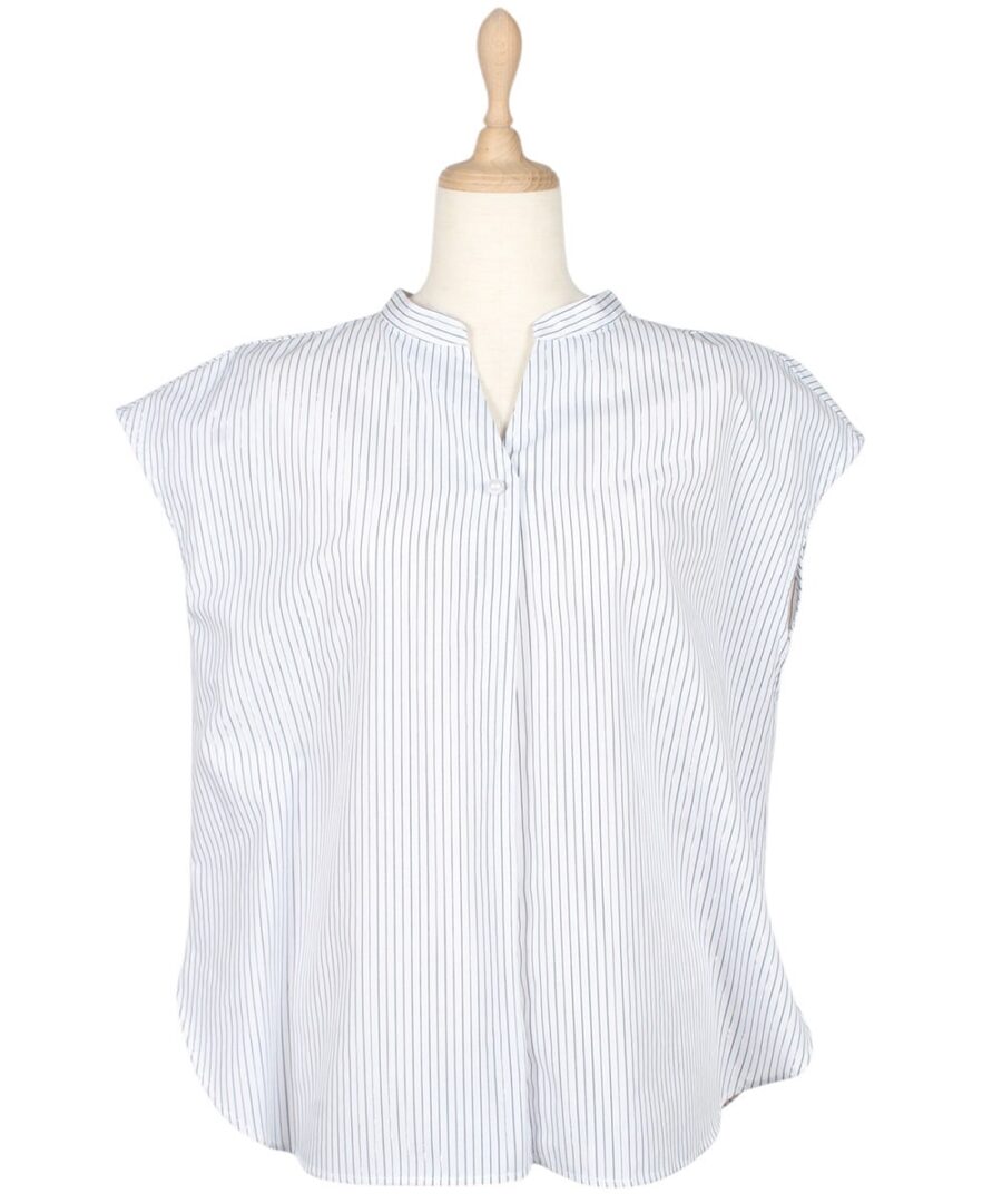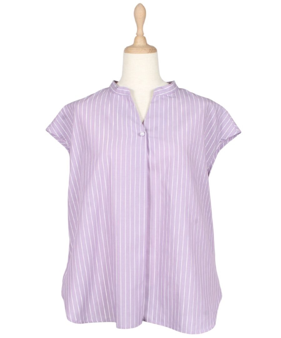 【ラメストライプフレンチスリーブブラウス】