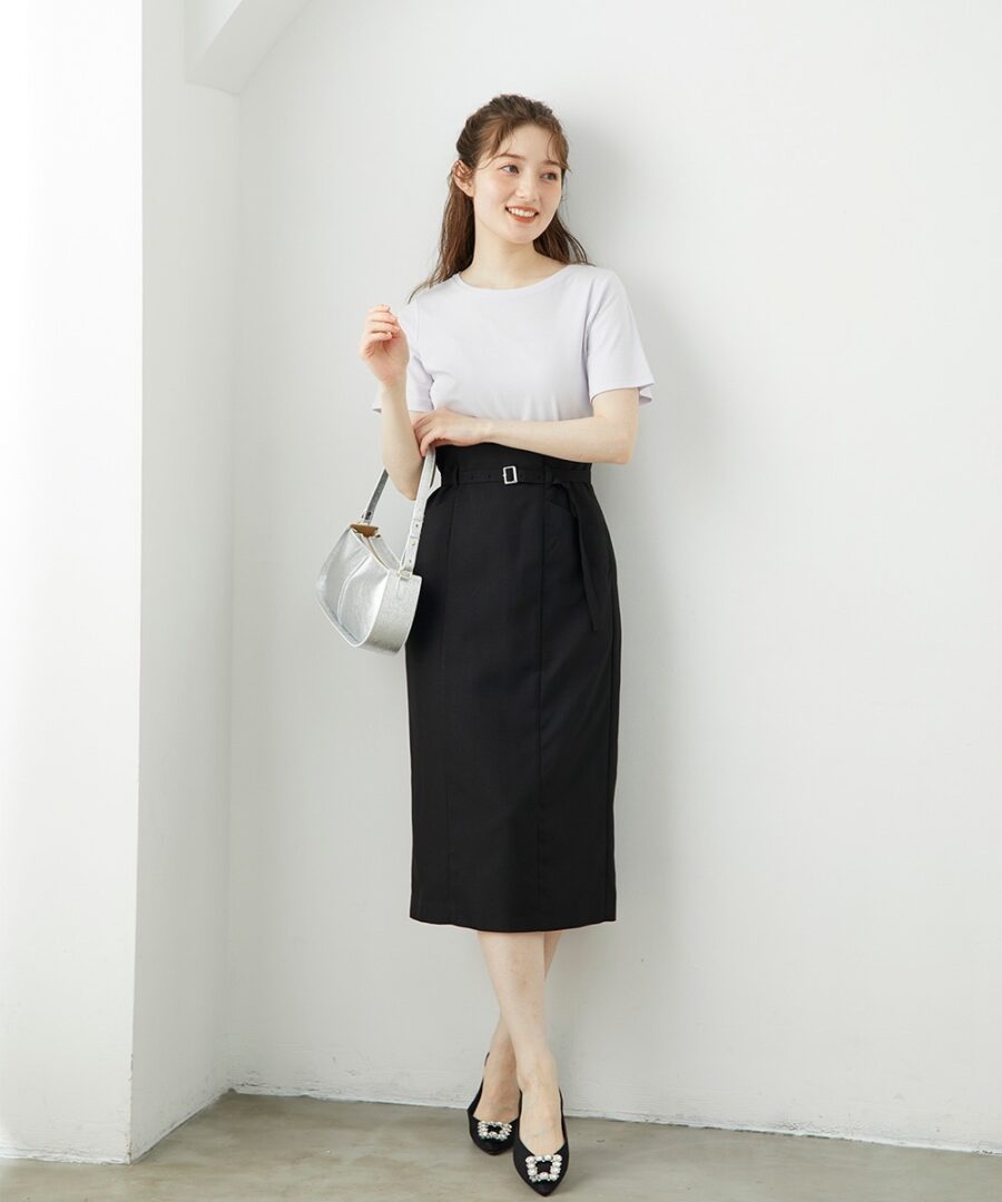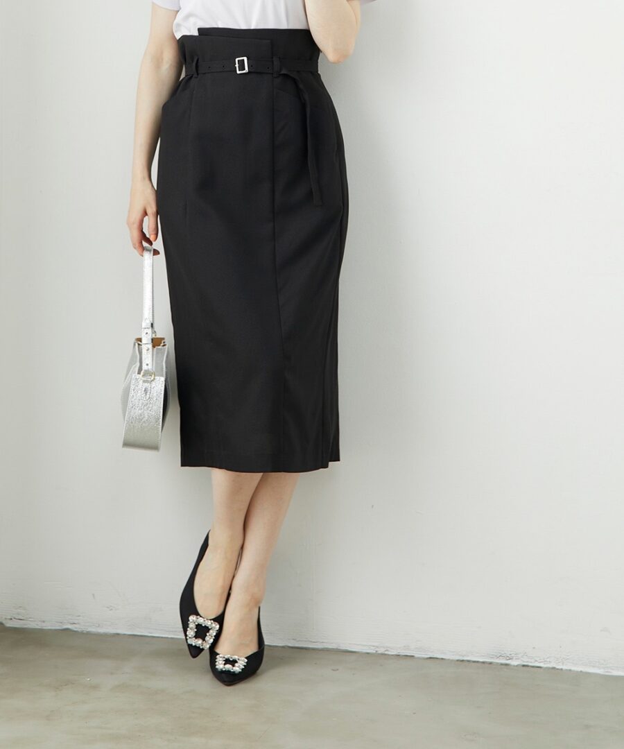 【ナローベルト付ハイウエストタイトスカート】