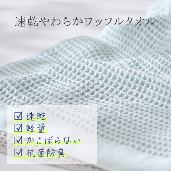 やわらかく心地良い肌触りのワッフルタオル。