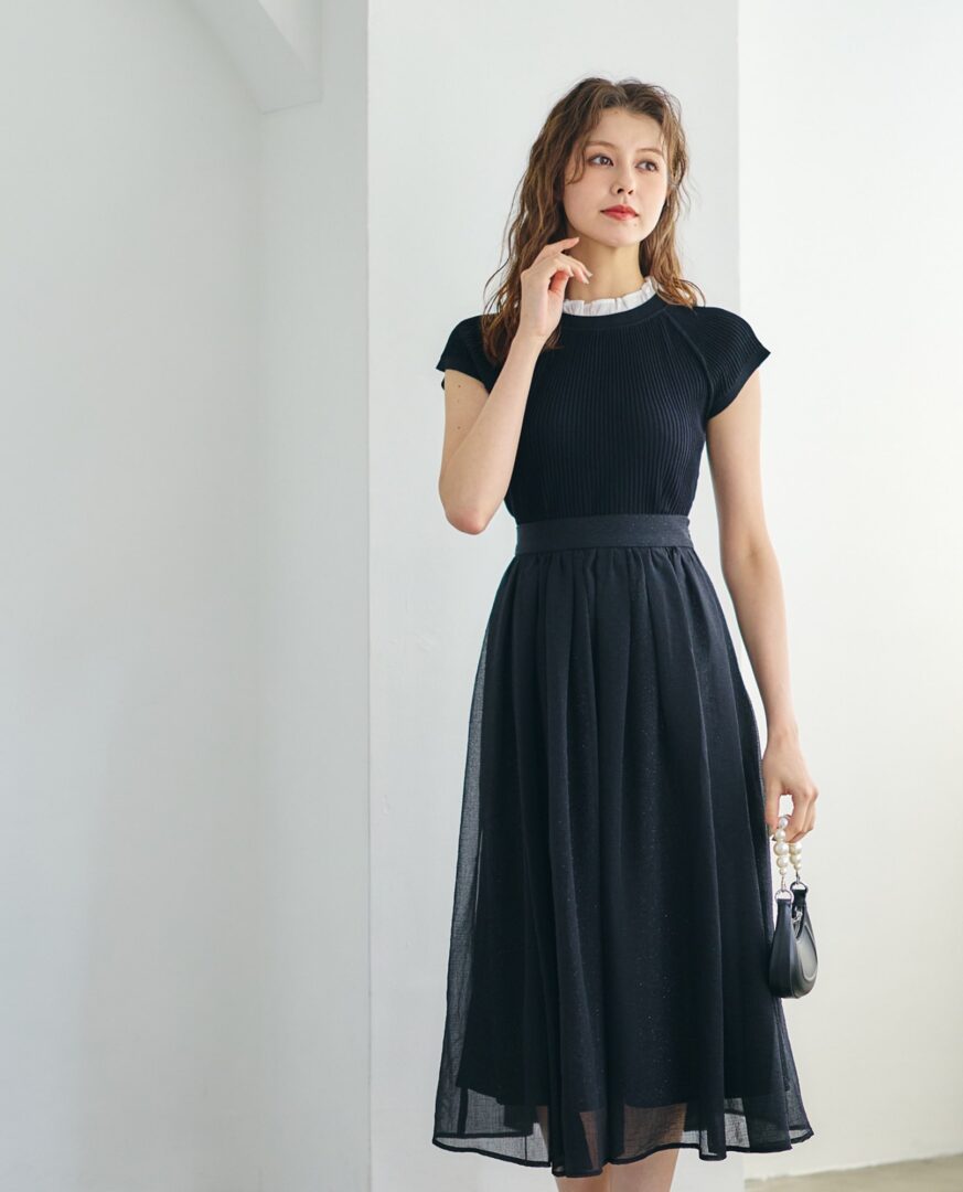 控えめなフリルと、繊細な透け感が品よく映える黒のワントーンスタイル⭐︎