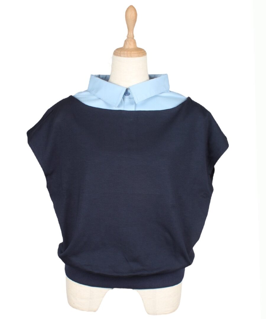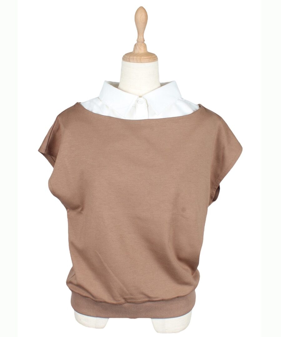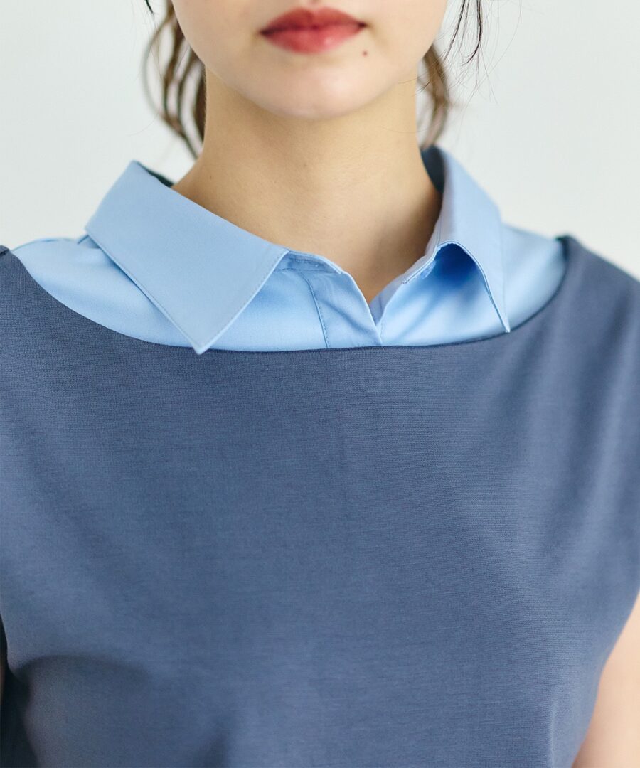 シャツカラーをドッキングしたきちんと見えするデザイン!