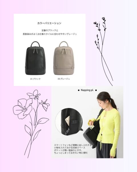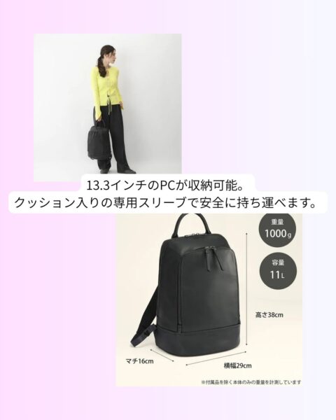 “使い捨てしない通勤バッグ”として、通勤にも普段使いにもマルチに活躍するアイテムです。