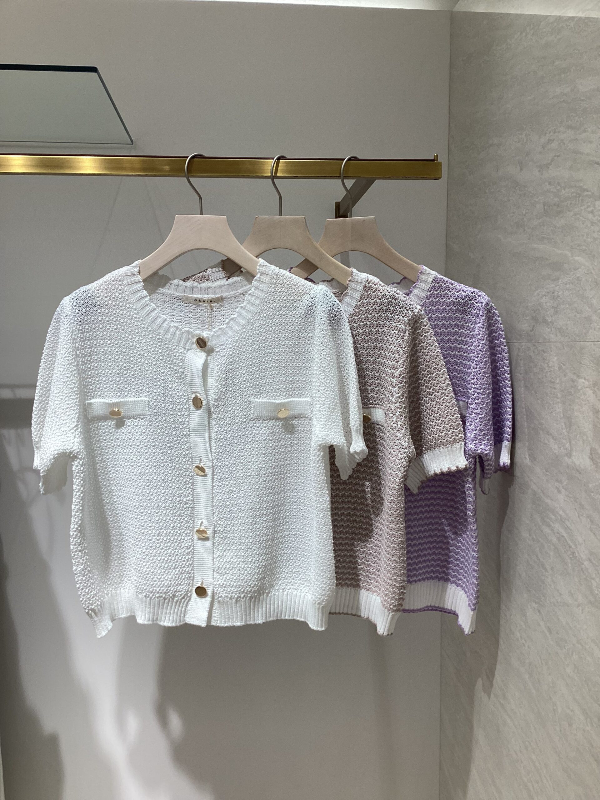 商品名: 配色リブ半袖ニットカーディガン