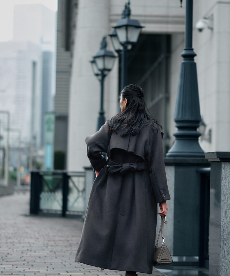 トレンド感のあるケープデザインに太めのベルトがトレードマーク!