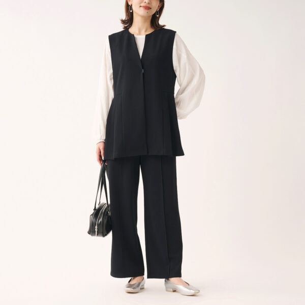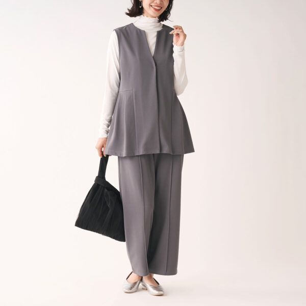ペプラムの切り替えデザインでスタイルアップが叶う、きれいめジレ