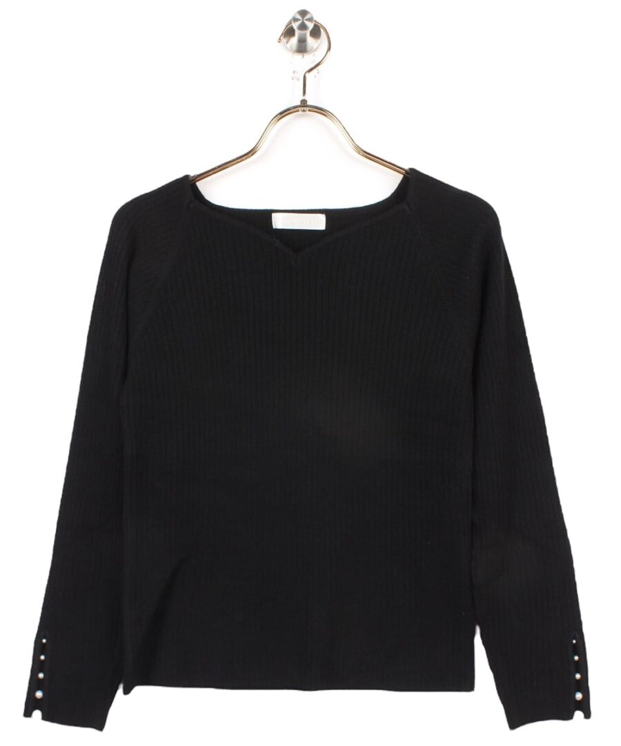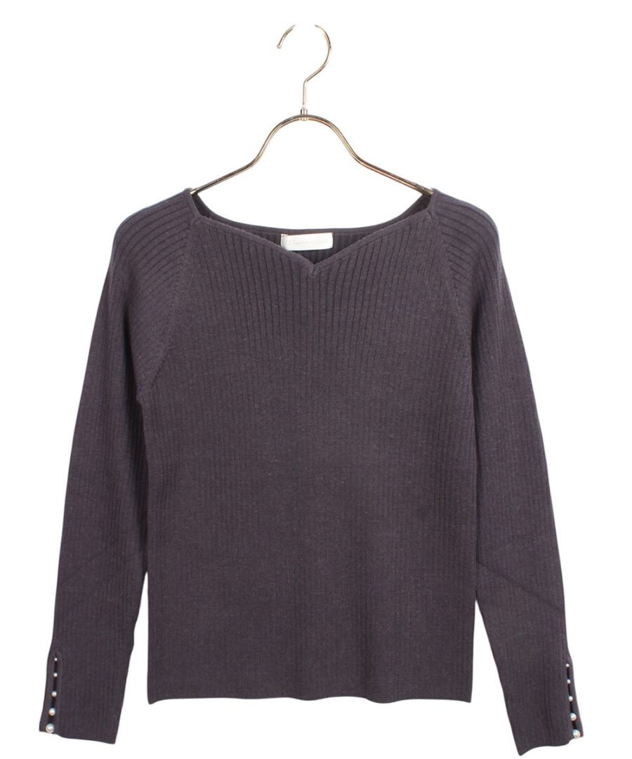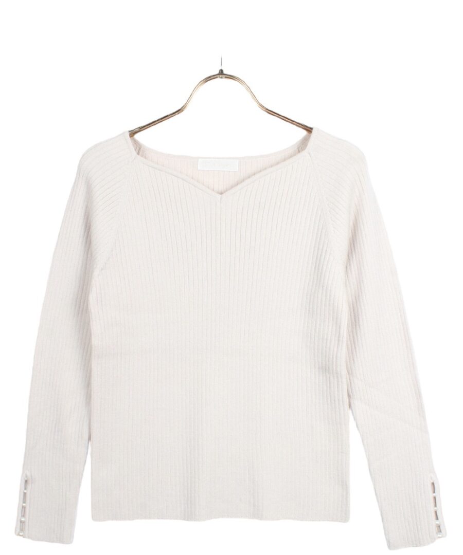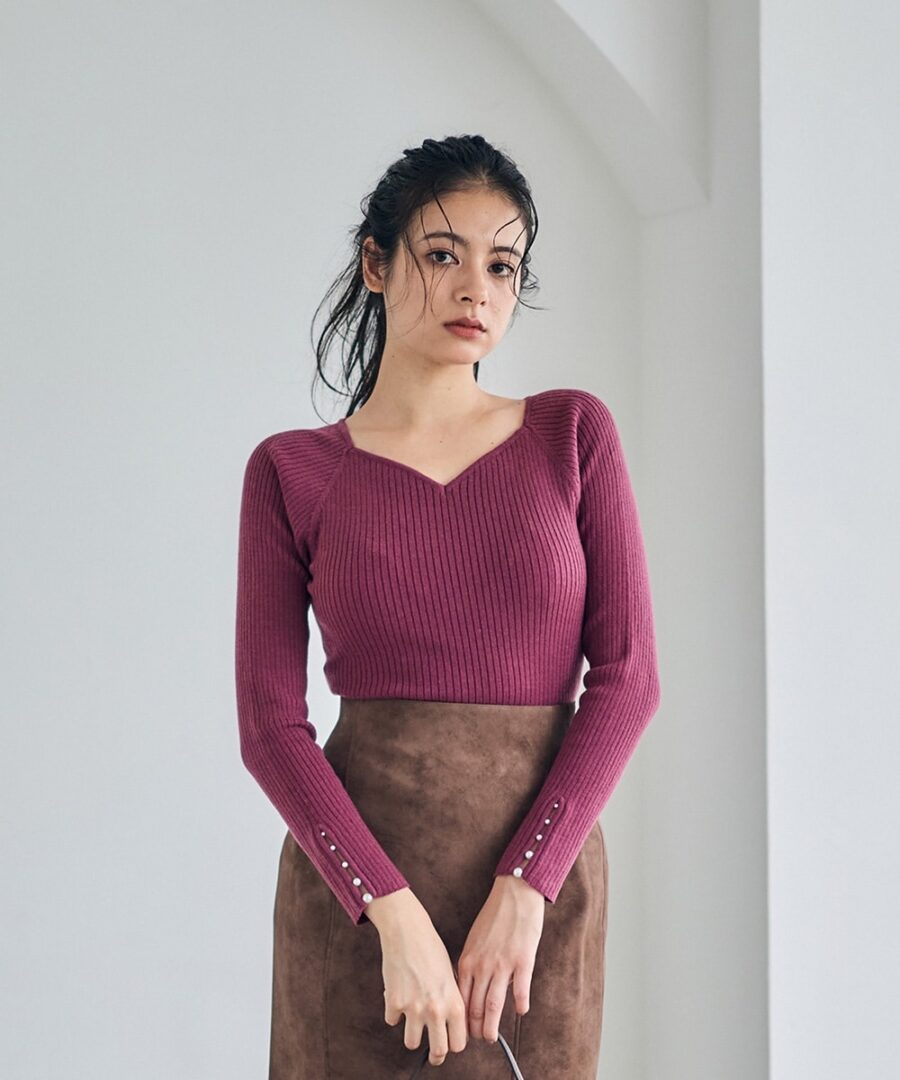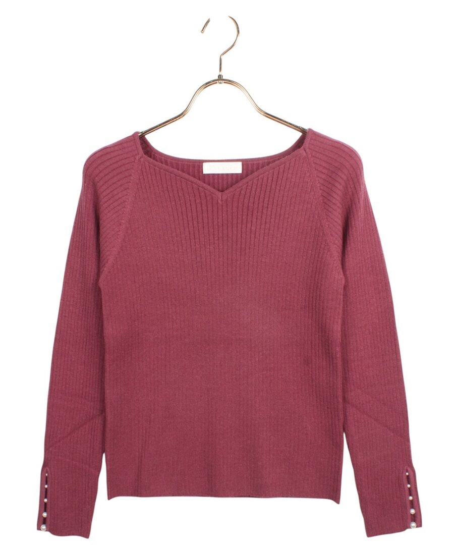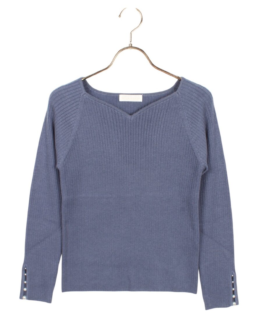 【ハートネック袖口アソートパールリブニットプルオーバー】