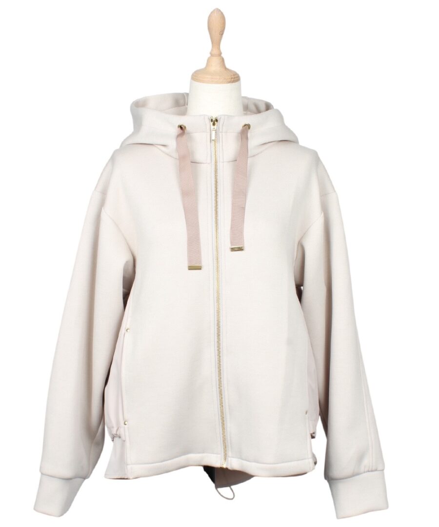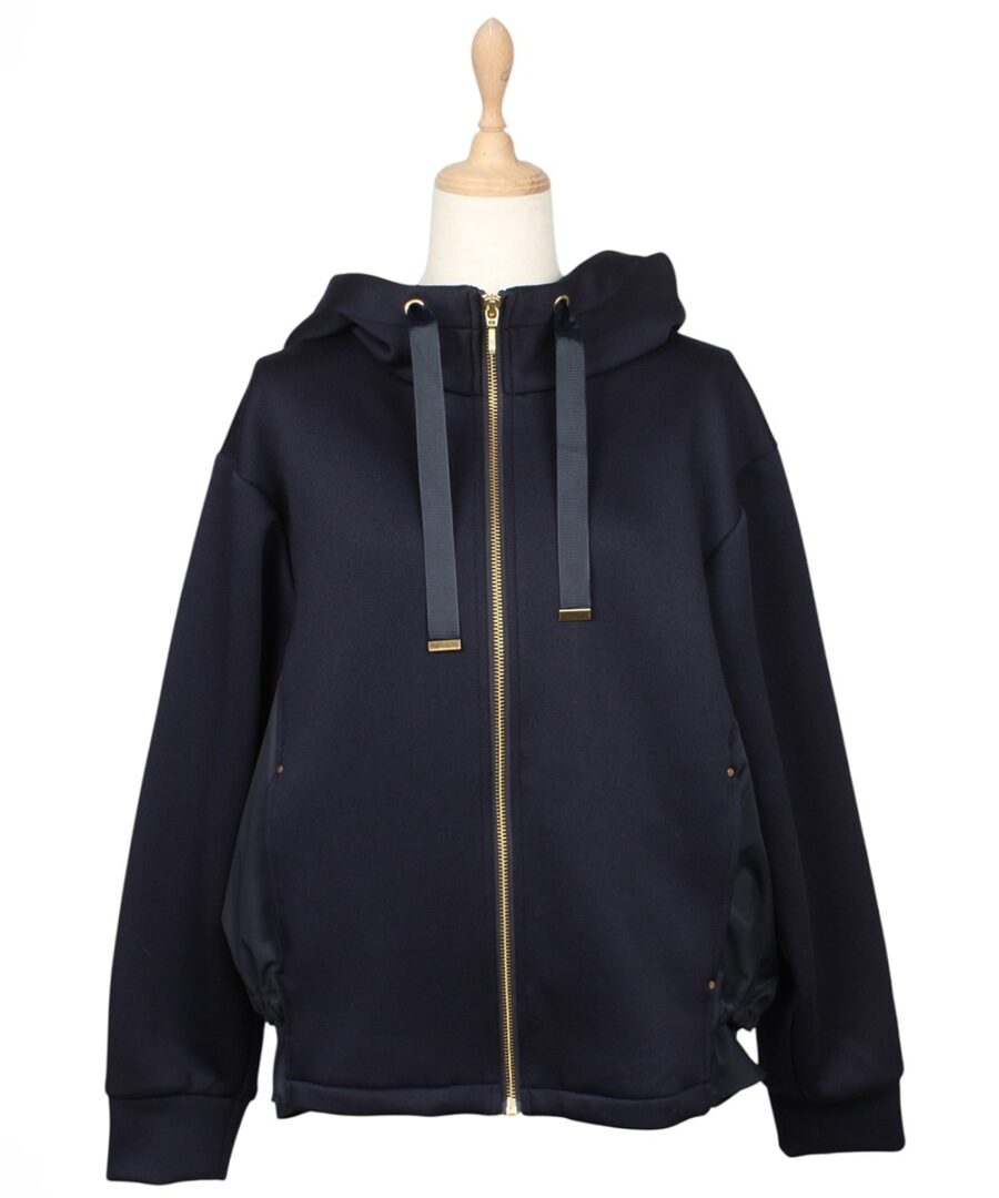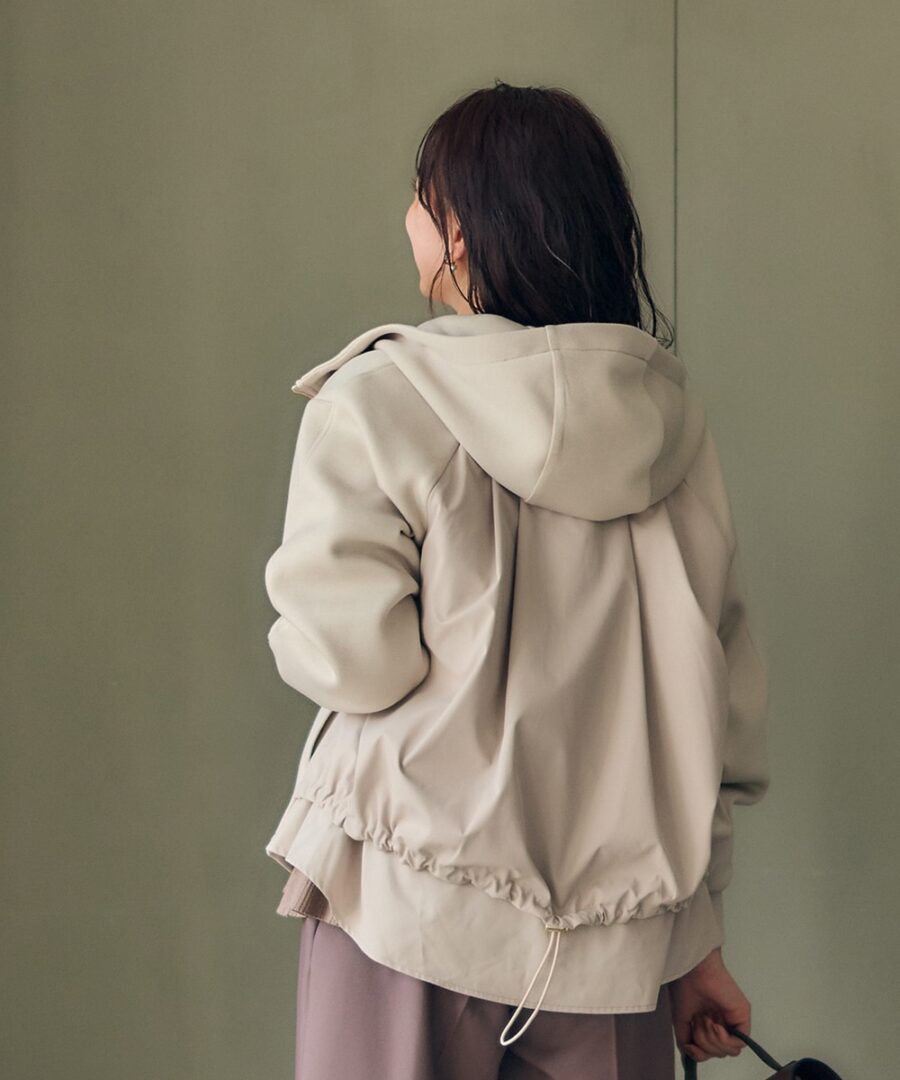 【異素材ドッキングフーデッドブルゾン】