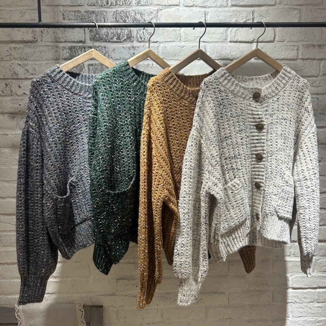 カラーネップのかわいらしいカーディガンが