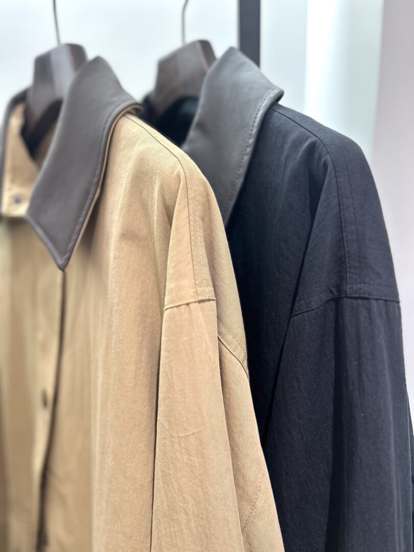 レザーの襟の切り替えでブリティッシュな雰囲気を楽しんだり、襟を取り外してシンプルなジャケットとして楽しんだりが可能です◎