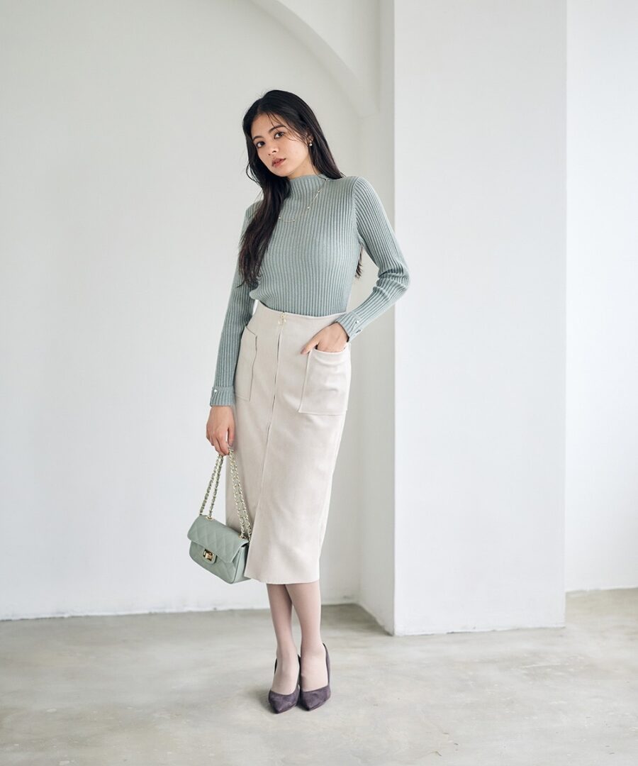 細リブが女性らしい美しい曲線を描き、