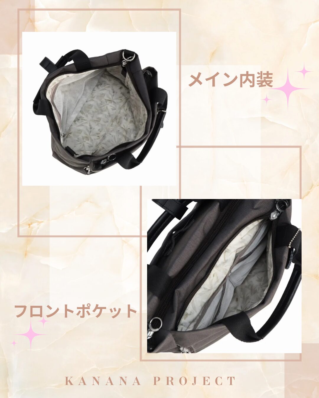長さ調節機能可能なショルダーベルト付きで、ショルダーバッグとミニトート両方で使えます。