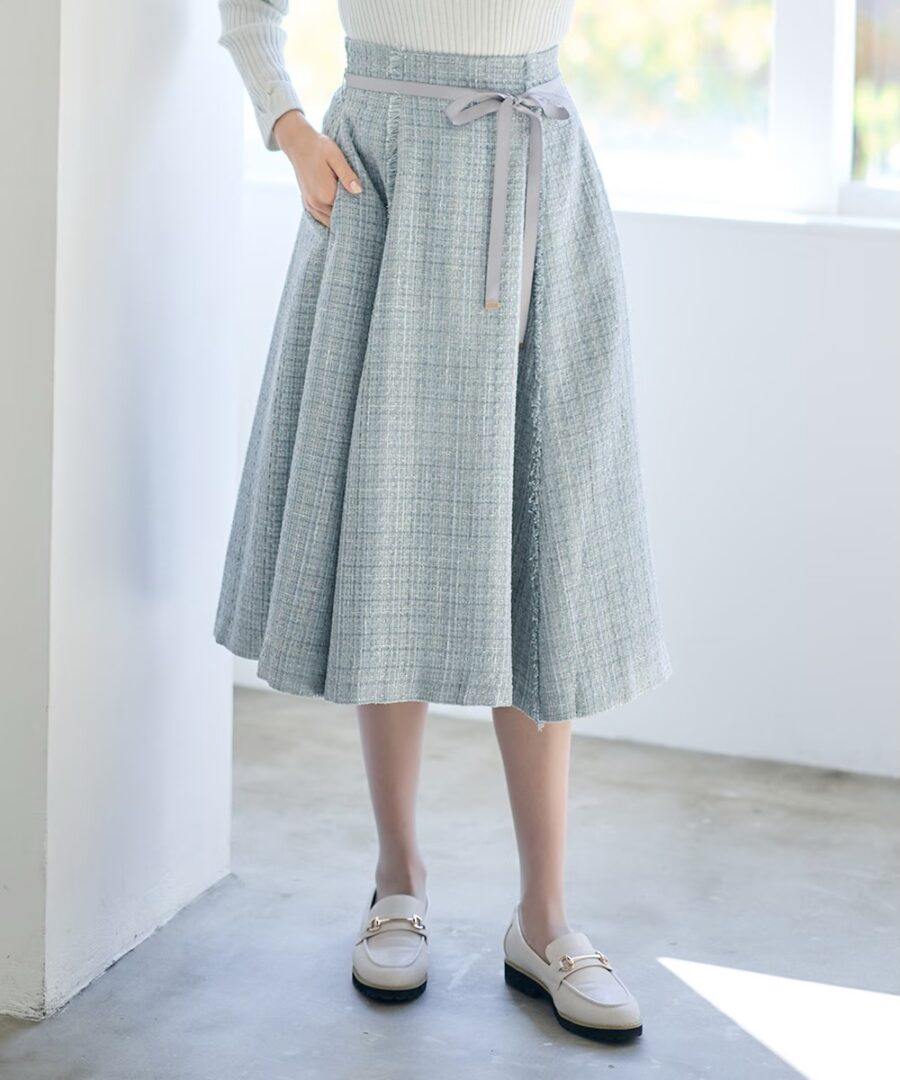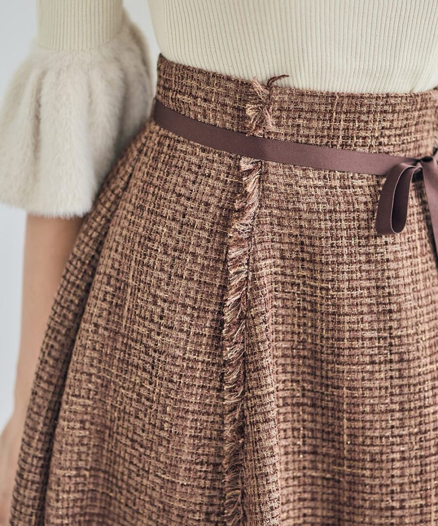 【リボン付ツイードフレアスカート】