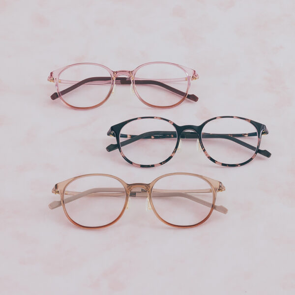 メイクテクニックの原理を活かした、かけるだけで自然に血色感がアップするメガネです。