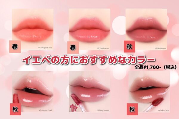 ジェリーフィットティンティッドグロウティント 全品 1,760円(税込) 01 ニューピーチベア 02 ピーチオントップ 03 クールタイムベリー 04 ミューティフィシャルプラム 05 アップルボム 06 チェリシャス 07 オータムピーチ 08 ロージーブリーズ 09 パインモーブ 10 フォールンココ 大変人気で数も少なくなっておりますので、店頭にてお好きなカラーを見つけてください🩶🐶 皆様のご来店お待ちしております🫧💘