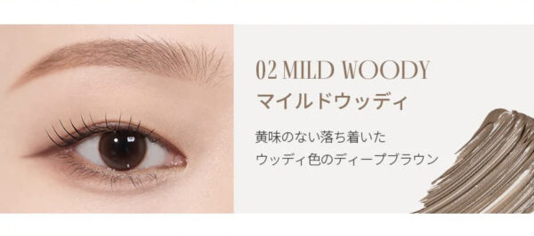 ・落ち着いたお色味で黒色よりもワントーン明るいカラー ・黒髪〜暗髪の方、ブルベの方におすすめ #02 マイルドウッディ 1,210円(税込)