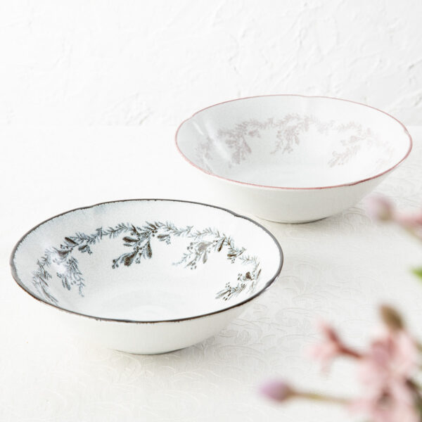 滲んだ絵柄と風合いある釉薬で、他の食器とも馴染む柄物シリーズ