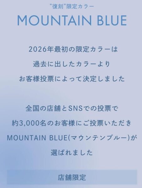 皆さまの投票で1位を獲得した人気カラー、限定カラー「マウンテンブルー」が、