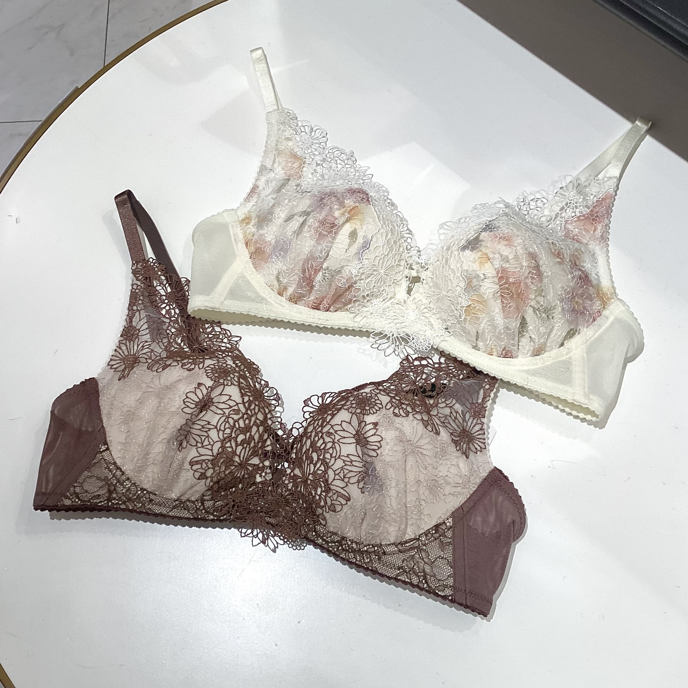 カップ全面に刺繍が施されており、花柄のケミカルレースが贅沢なデザイン。