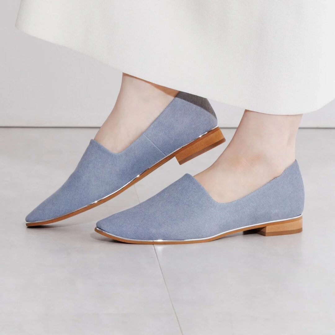 人気のフラットパンプスにビンテージデニムのような風合いに仕上げた牛革使用のブルーが登場いたしました❗️