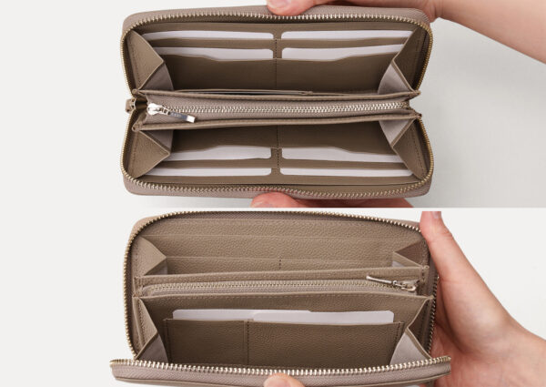 大きく開いて中身が一目でわかる長財布。