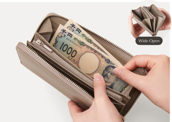 お札や小銭の出し入れがしやすい設計です。